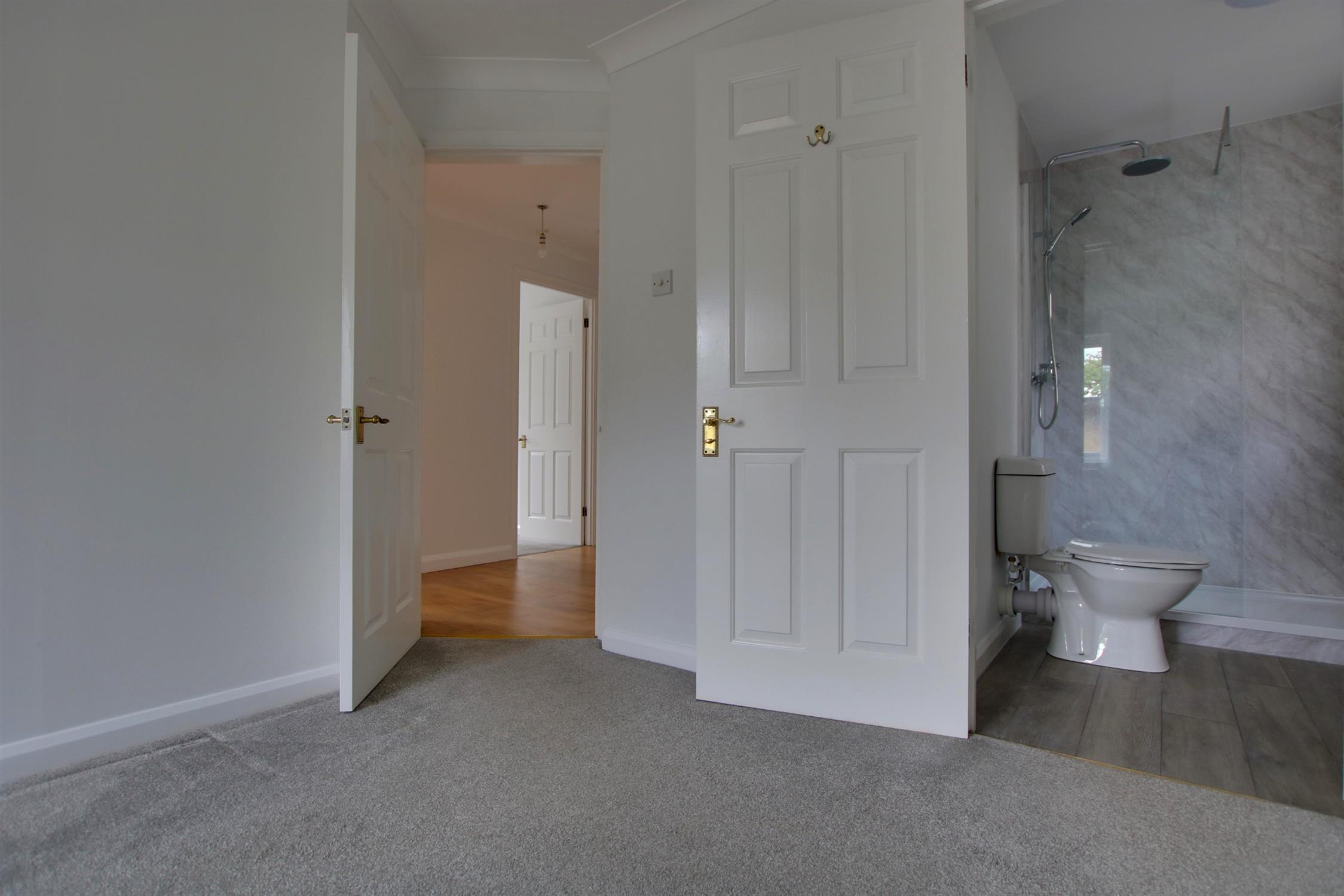 Wood effect laminate flooring. Walk-in shower with glass screen and bar valve rainfall shower over, w.c. and ceramic pedestal wash basin. Wall panelling. Double glazed window to side. Radiator. Smooth walls and ceiling. Extractor fan.