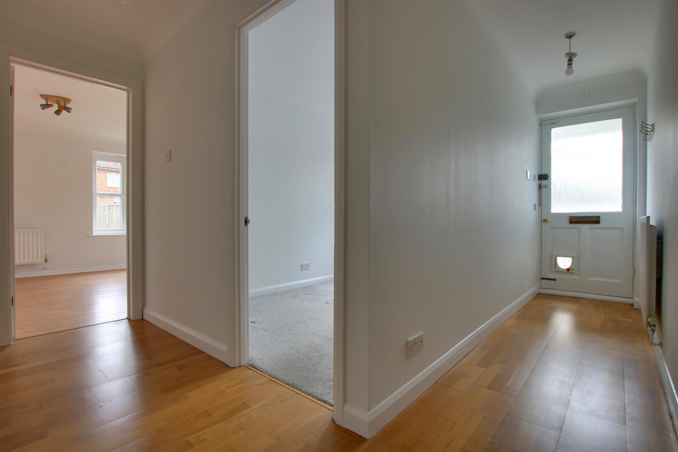 Engineered wooden flooring. Smooth walls and ceiling. Doors leading to kitchen, living room, both bedrooms and bathroom. Storage cupboard. Radiator.