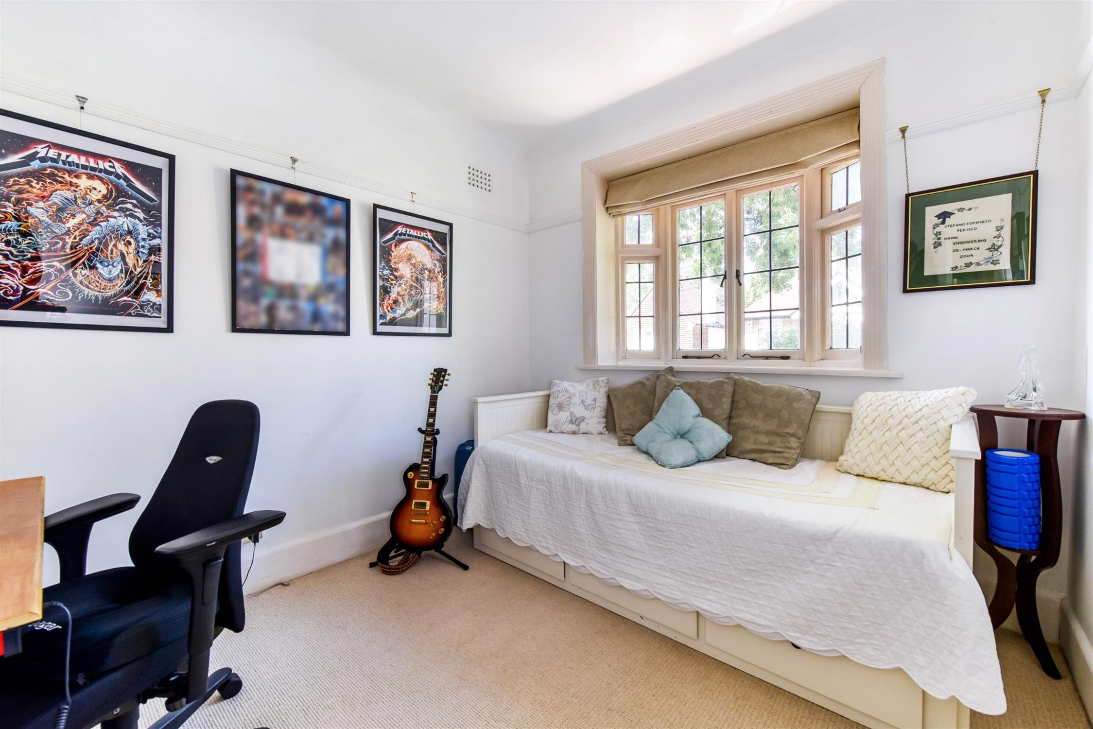 A generously proportioned room benefitting from feature velux double glazed windows providing extensive natural light.. Radiator. Built-in wardrobe cupboard. Access to eaves storage.