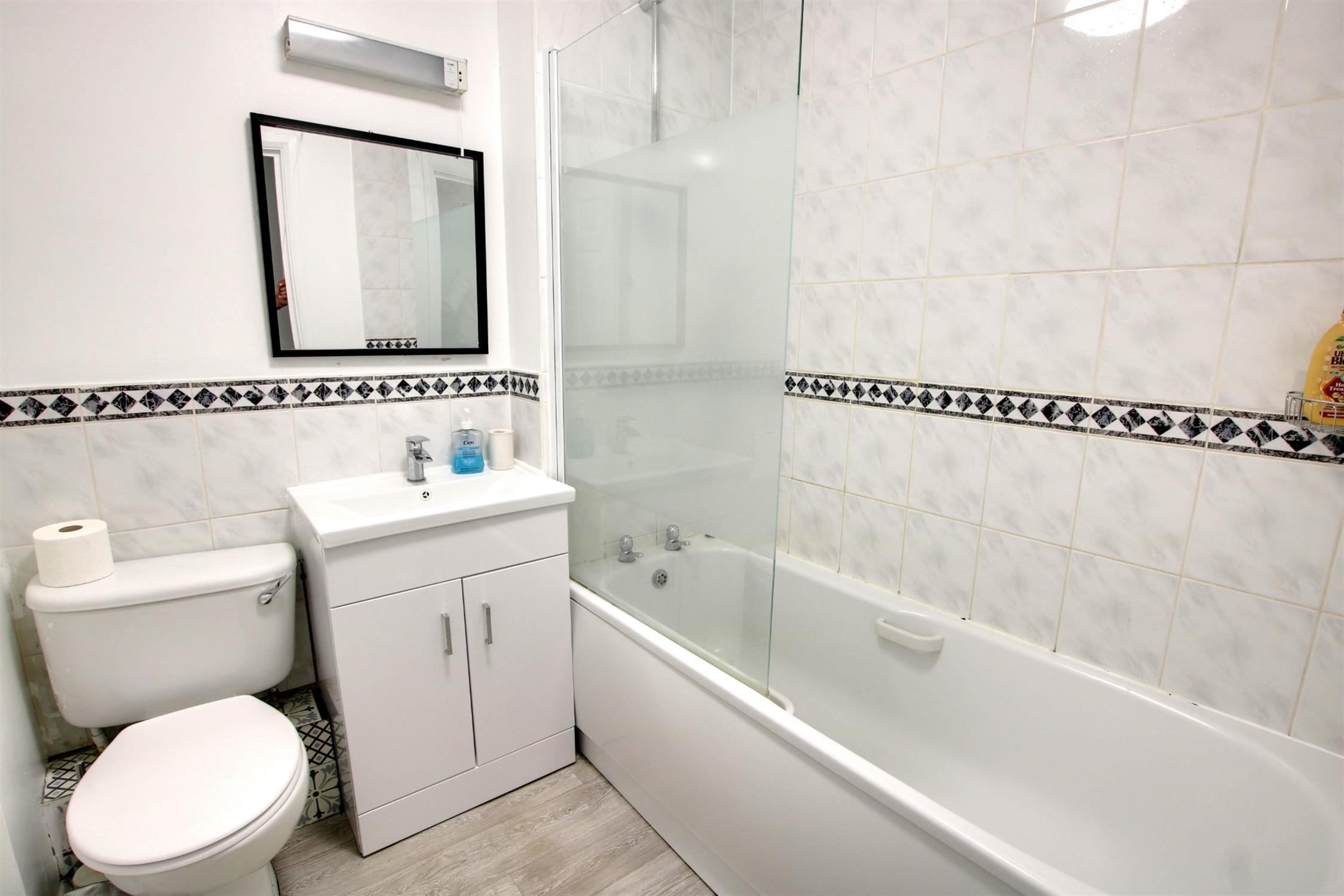Tiled flooring and laminate flooring. Panelled bath with shower over. Low level W.C and wash basin. Extractor fan.