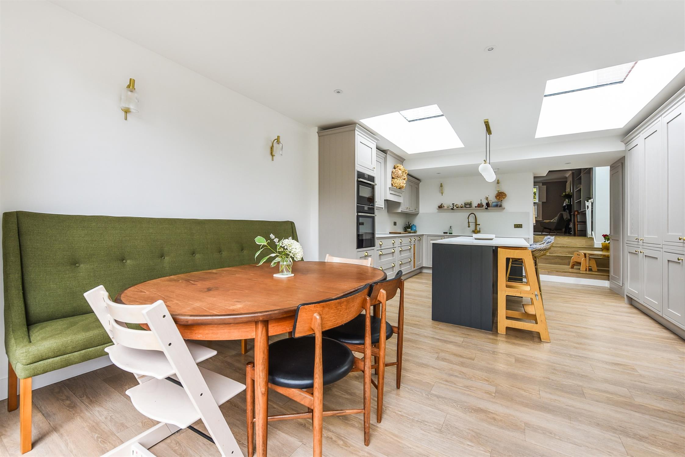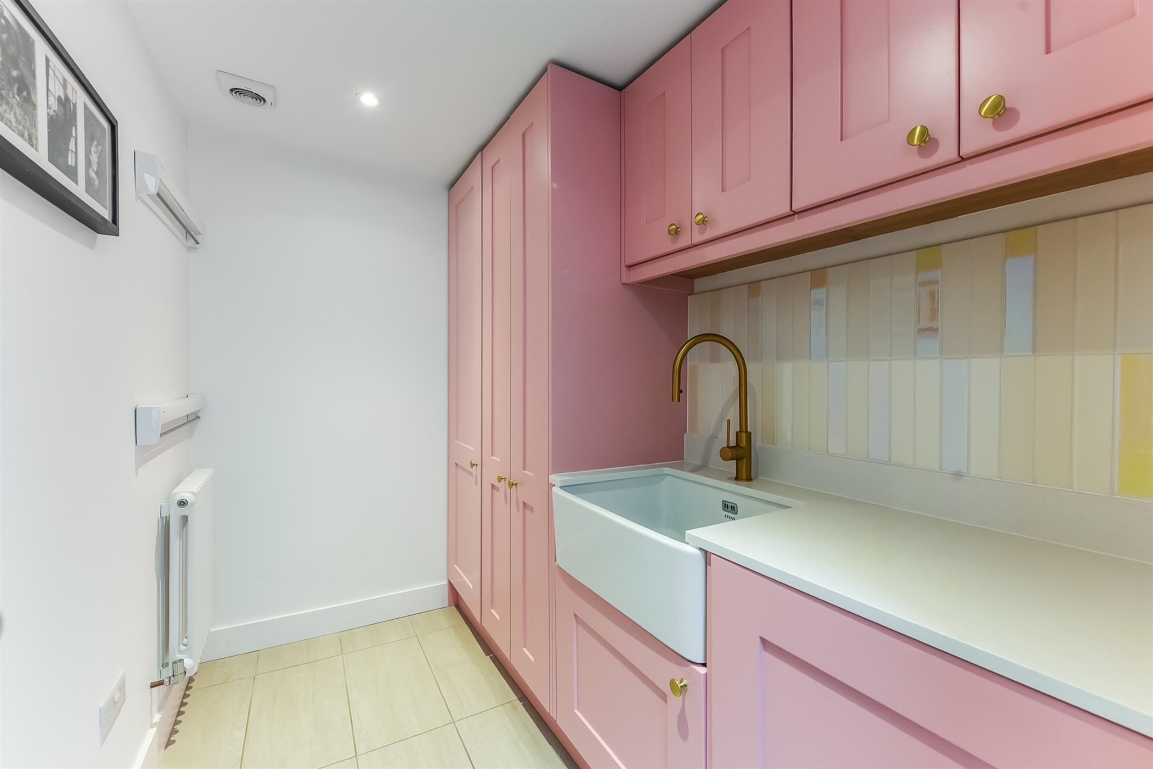 A very impressive and contemporary space, benefiting from a wealth of light through the large-format skylights, windows and bi-fold doors. The kitchen has been wonderfully designed to offer a wealth of storage without overcrowding the room. Worktops are solid Quartz worktops. Integrated appliances include full-sized fridge, full-sized freezer, wine fridge, Siemens induction hob with five rings, Neff oven with steaming setting and hide & slide door, Neff microwave grill oven and dishwasher. Larder cupboard. Kitchen island with breakfast bar and storage. Inset sink with flexible tap and instant hot water tap. Space to dine adjacent to the aluminium bifold doors.