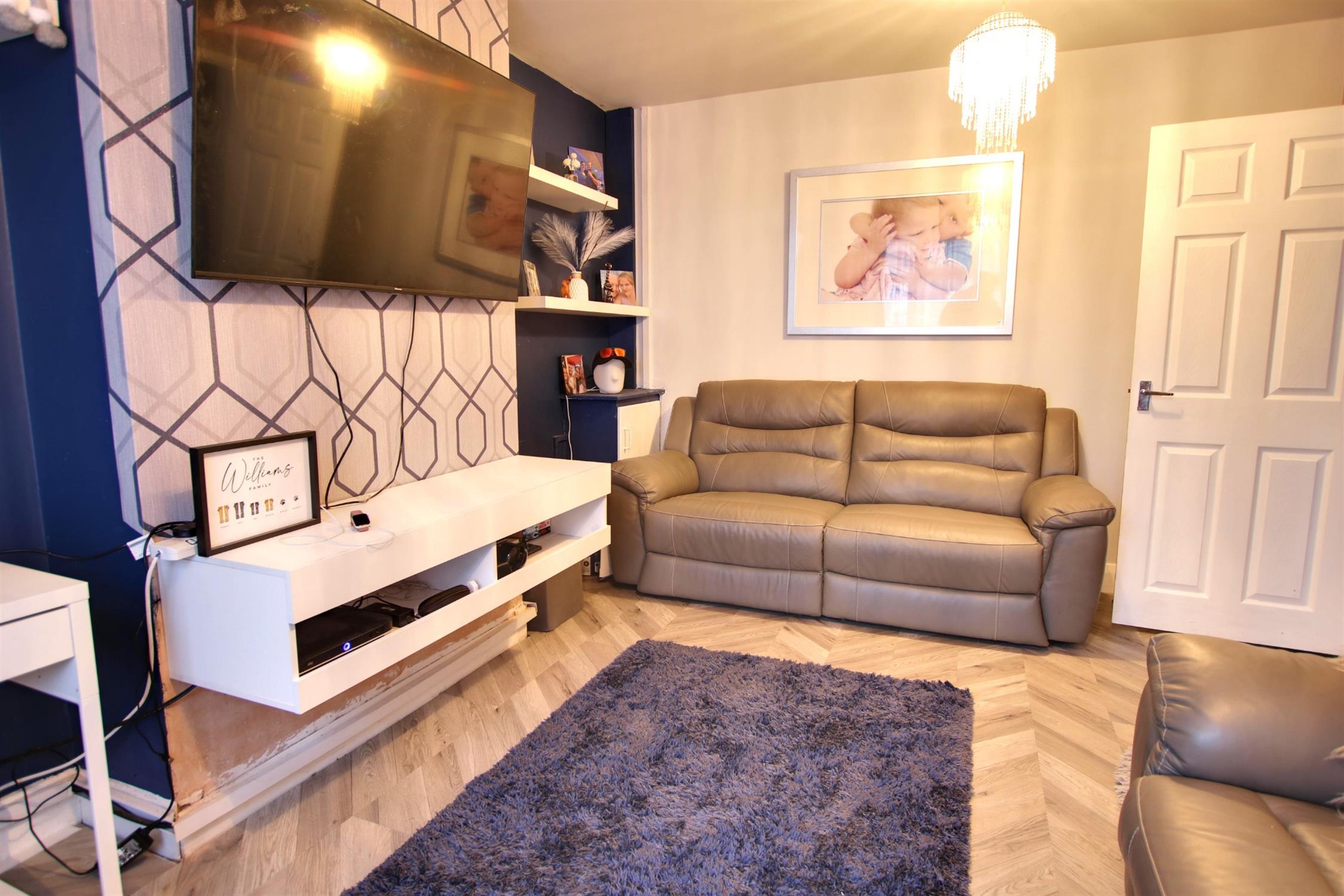 Laminate flooring. Stairs to first floor. Under stairs cupboard. Space for american style fridge/freezer. Double-glazed window to side aspect. Radiator.