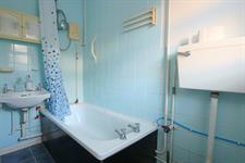 Tiled flooring and walls. Panelled bath with mixer tap and electric shower. Mid level W.C and wall mounted sink. Double-glazed window to rear aspect.