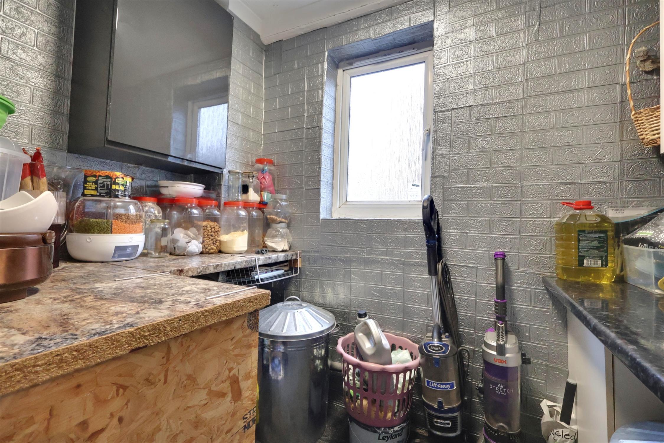 Tiled flooring, Wall and base units. Double glazed window to side aspect. Plumbing for a W.C or Washing machine can be installed.