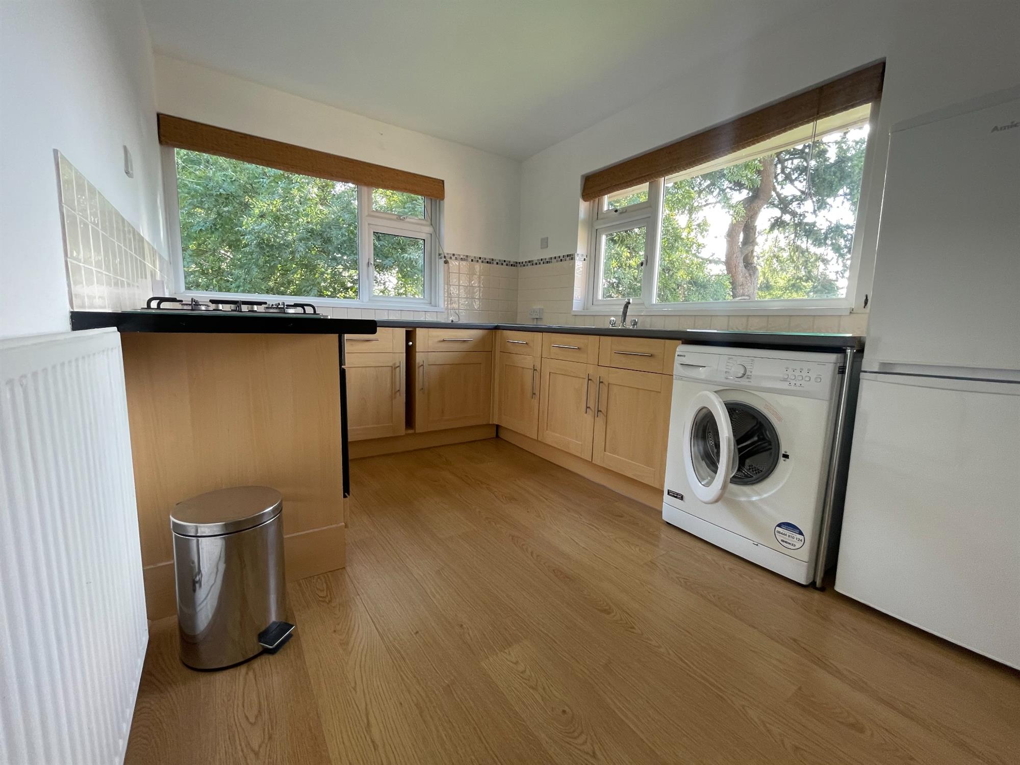 KITCHEN - Modern wall and base units and dual aspect views from windows. Appliances comprise of: electric oven, gas hob, fridge/freezer and washing machine. Storage area off.