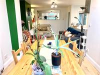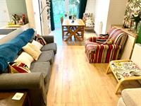 LOUNGE/DINER – Laminate flooring with built in cupboard unit and French doors to garden. Offering plenty of light from the skylight. Furnishings consist of: grey 3 seater sofa and shelving units, can stay or go.