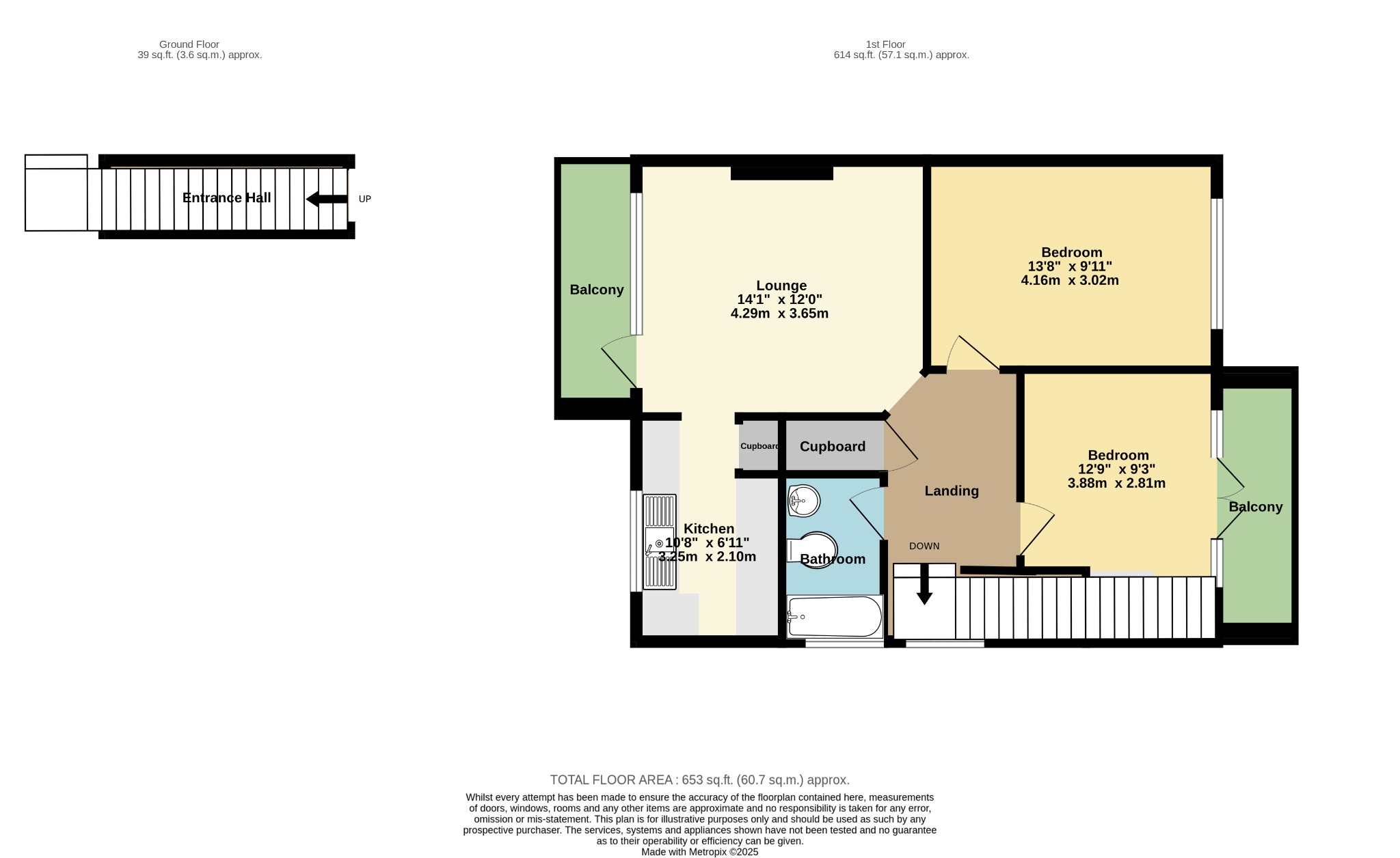 OWN ENTRANCE – Carpeted stairs to first floor and storage cupboard on the exterior.