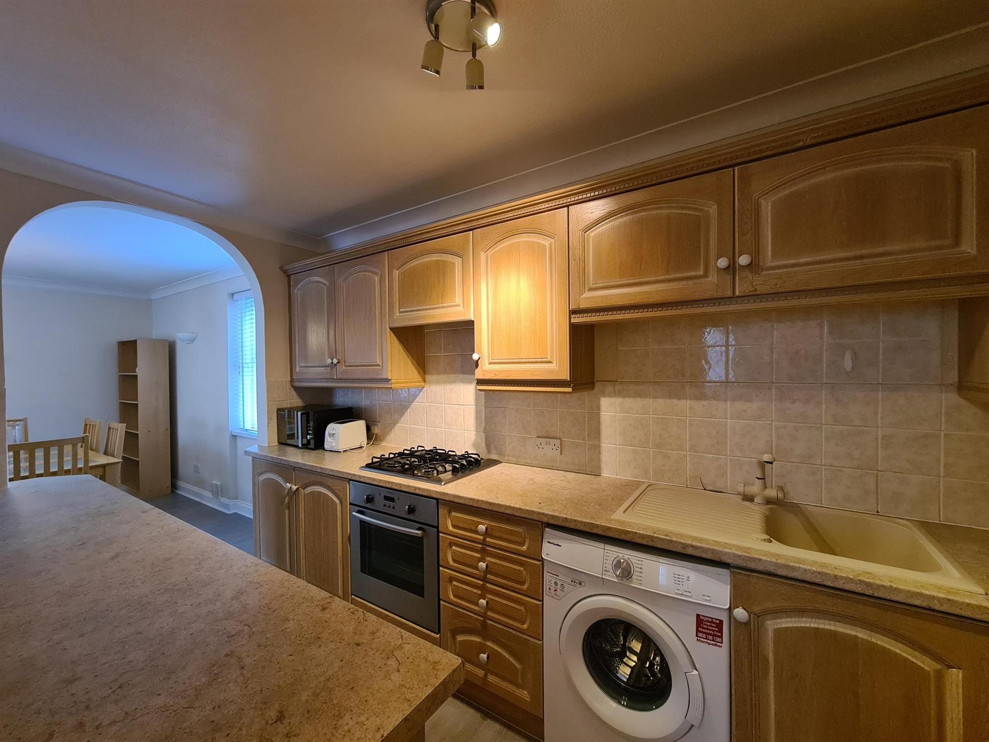 Appliances consist of: Gas hob, electric oven, integral fridge, integral freezer, With electric oven and gas hob, fridge/ freezer, washing machine and microwave.