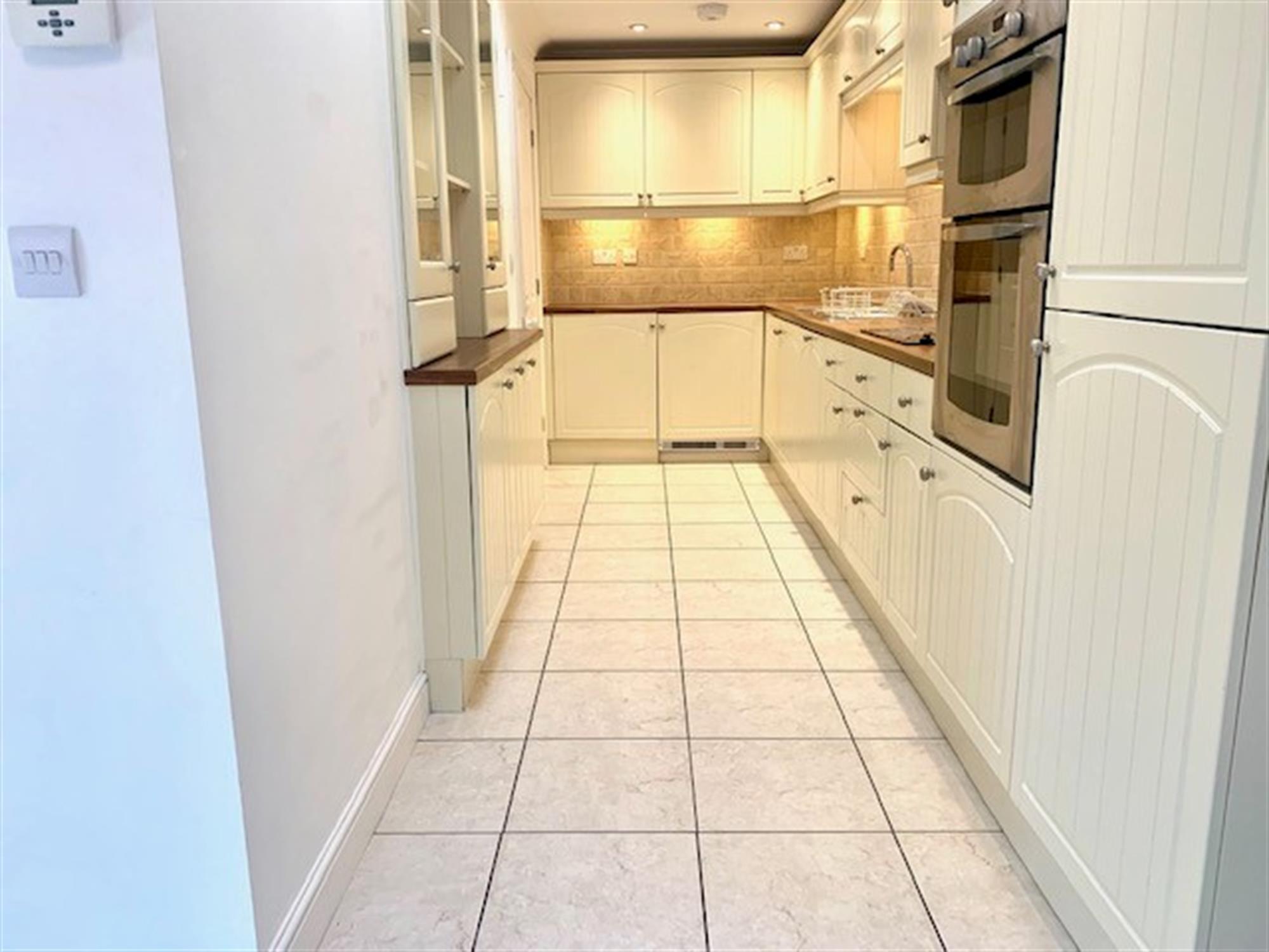 KITCHEN/BREAKFAST: Ceramic tiled floor. 2 round windows to garden along with French doors. Range of cream wall and base units. Appliances consist of: electric hob, double electric oven, integrated washing machine, integrated dishwasher, integrated fridge/freezer,