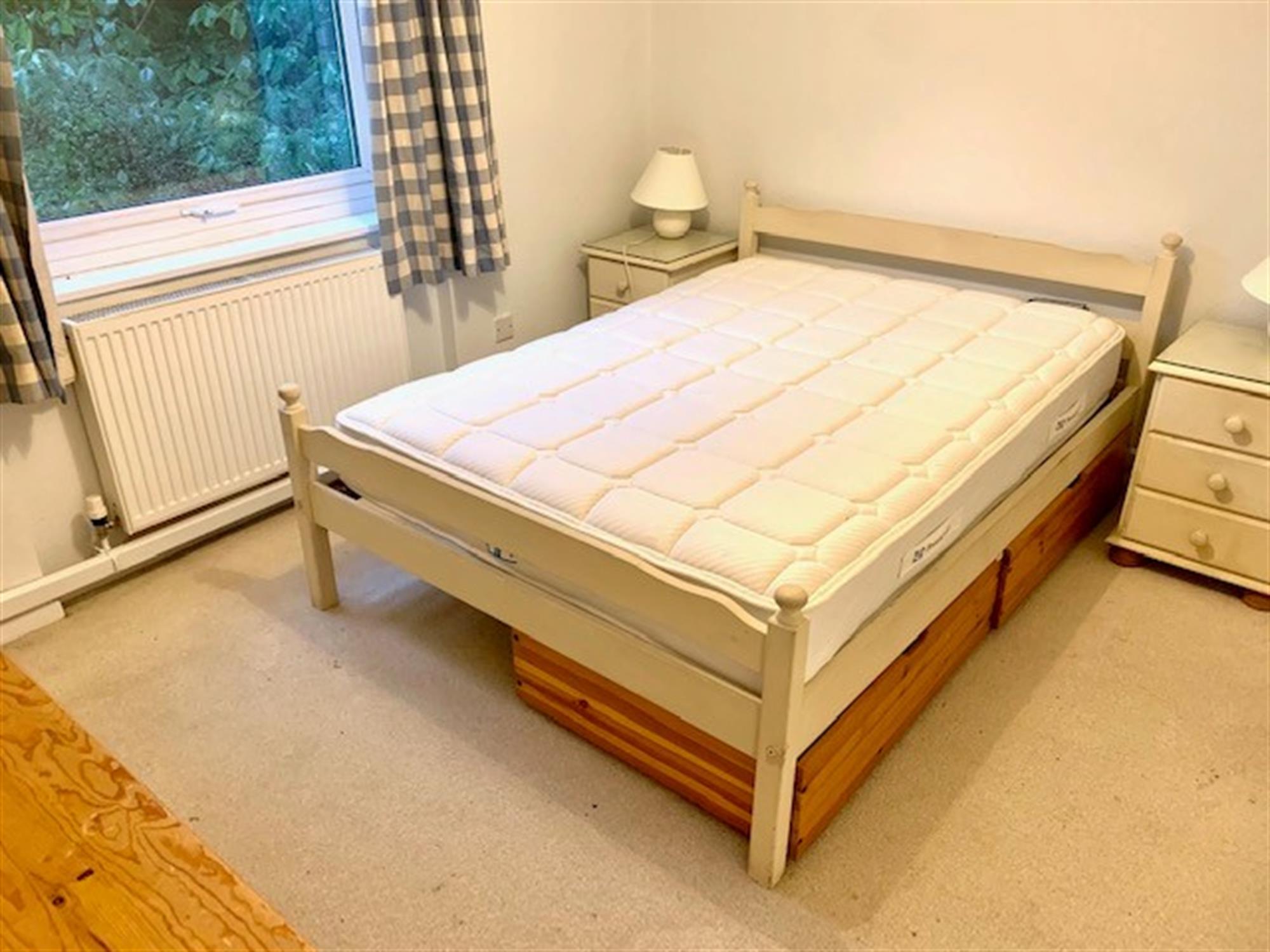 Carpeted. Window to side. Built in double wardrobe. Furniture consists of: Double bed, bedside units and drawers.