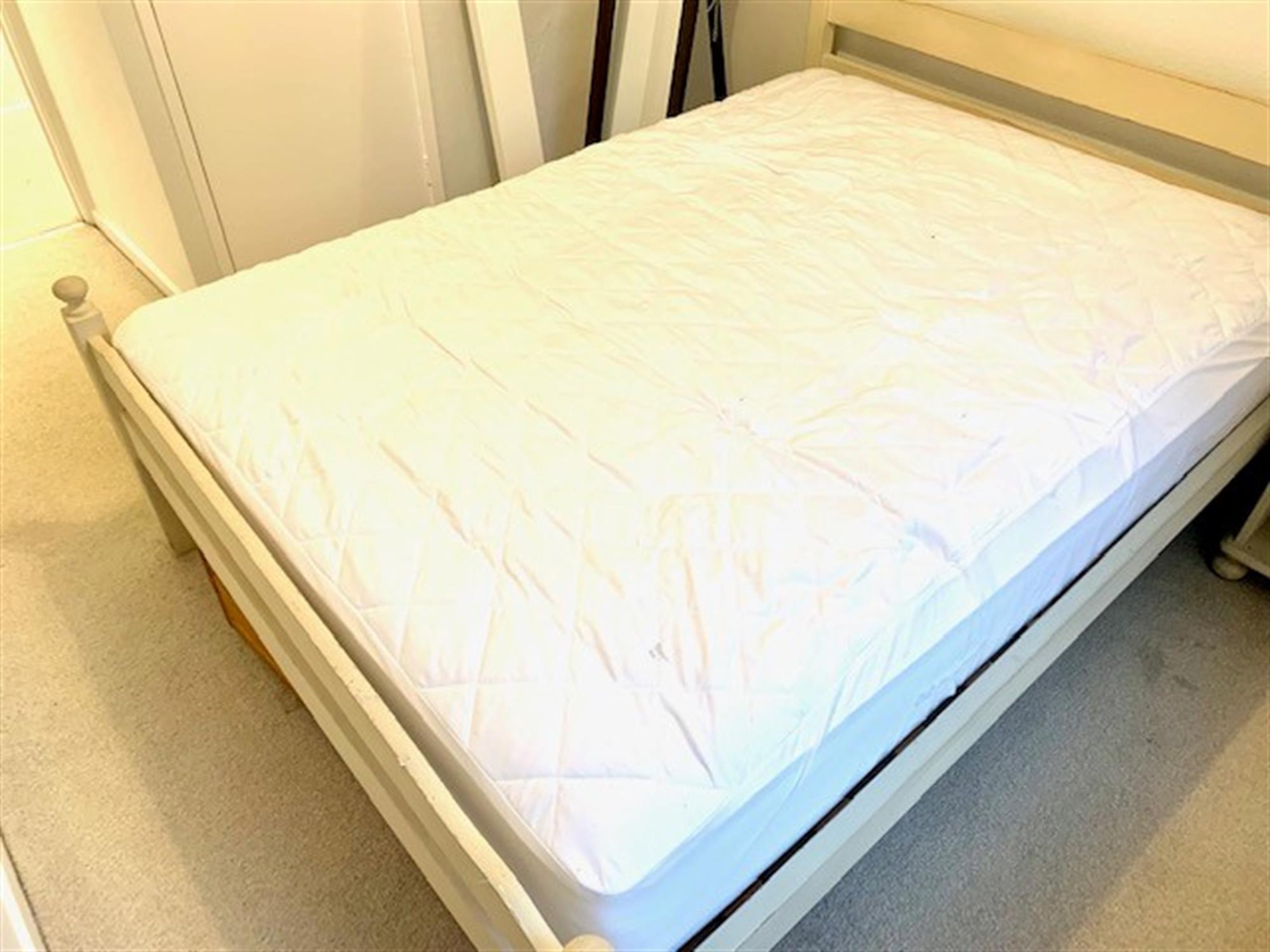 Carpeted. Window to side. Built in single wardrobe. Furniture consists of: Double bed and side unit.