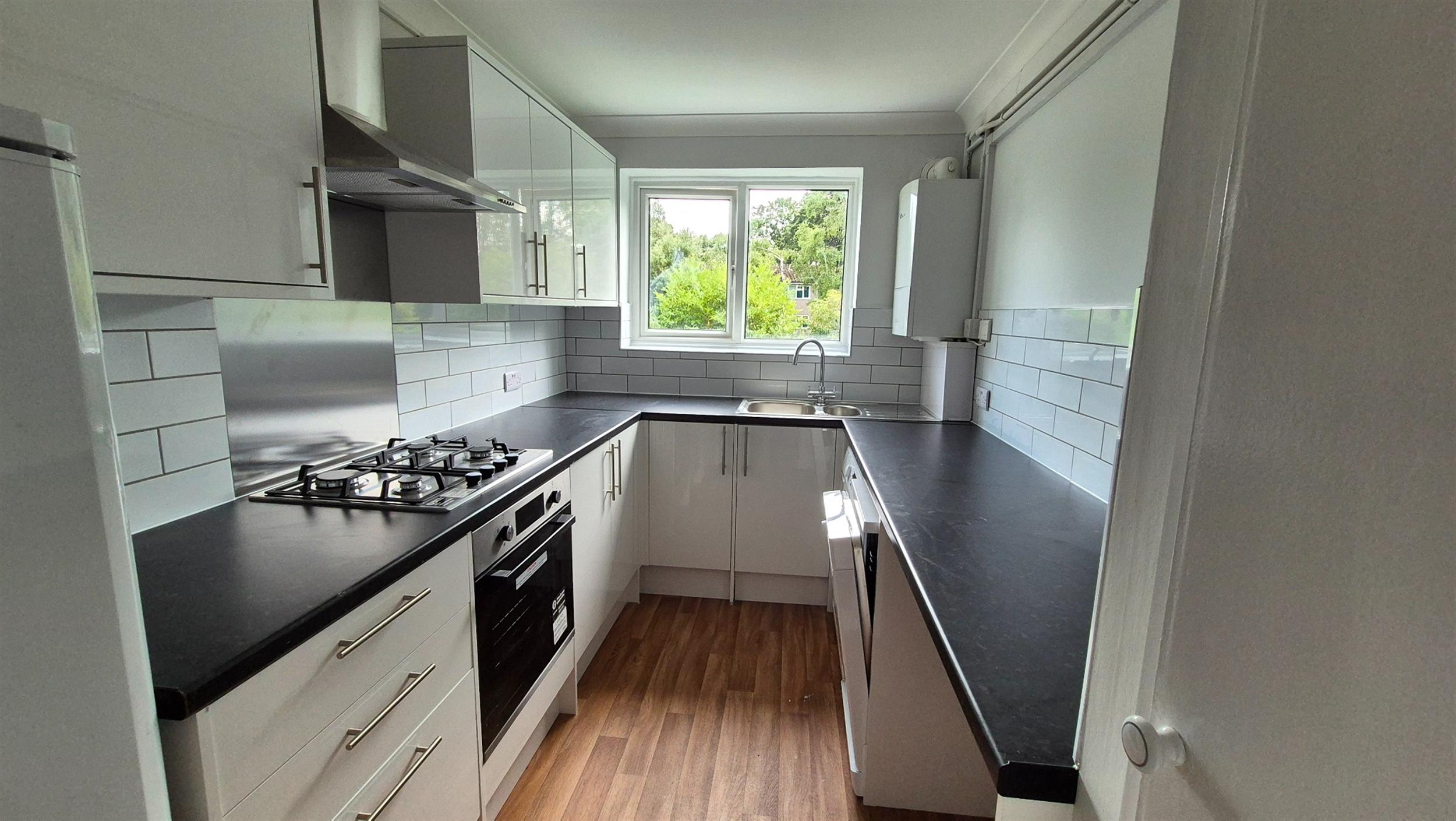 KITCHEN – Brand new white gloss kitchen with various wall and base units. Appliances include: washing machine, fridge/freezer, dishwasher, gas hob and electric oven. Window to front. Cupboard off.