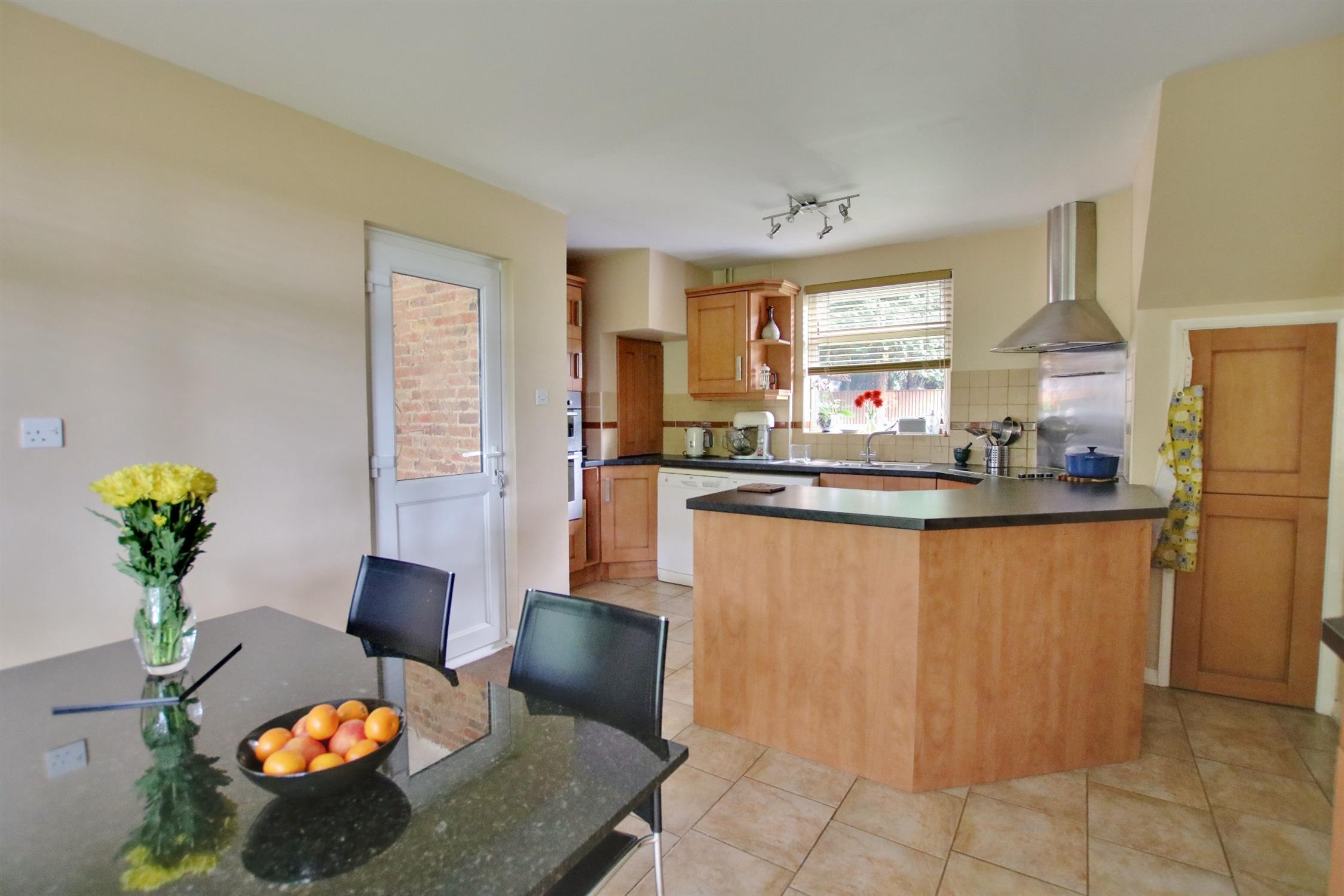 Double glazed windows to front and rear aspects. Smooth ceiling. Single drainer one and a half bowl sink unit with mixer tap and cupboard under. Further range of matching eye level and base mounted units. Built-in double oven. Fitted four ring electric hob with extractor over. Radiator. Tiled flooring. Door to side passageway.