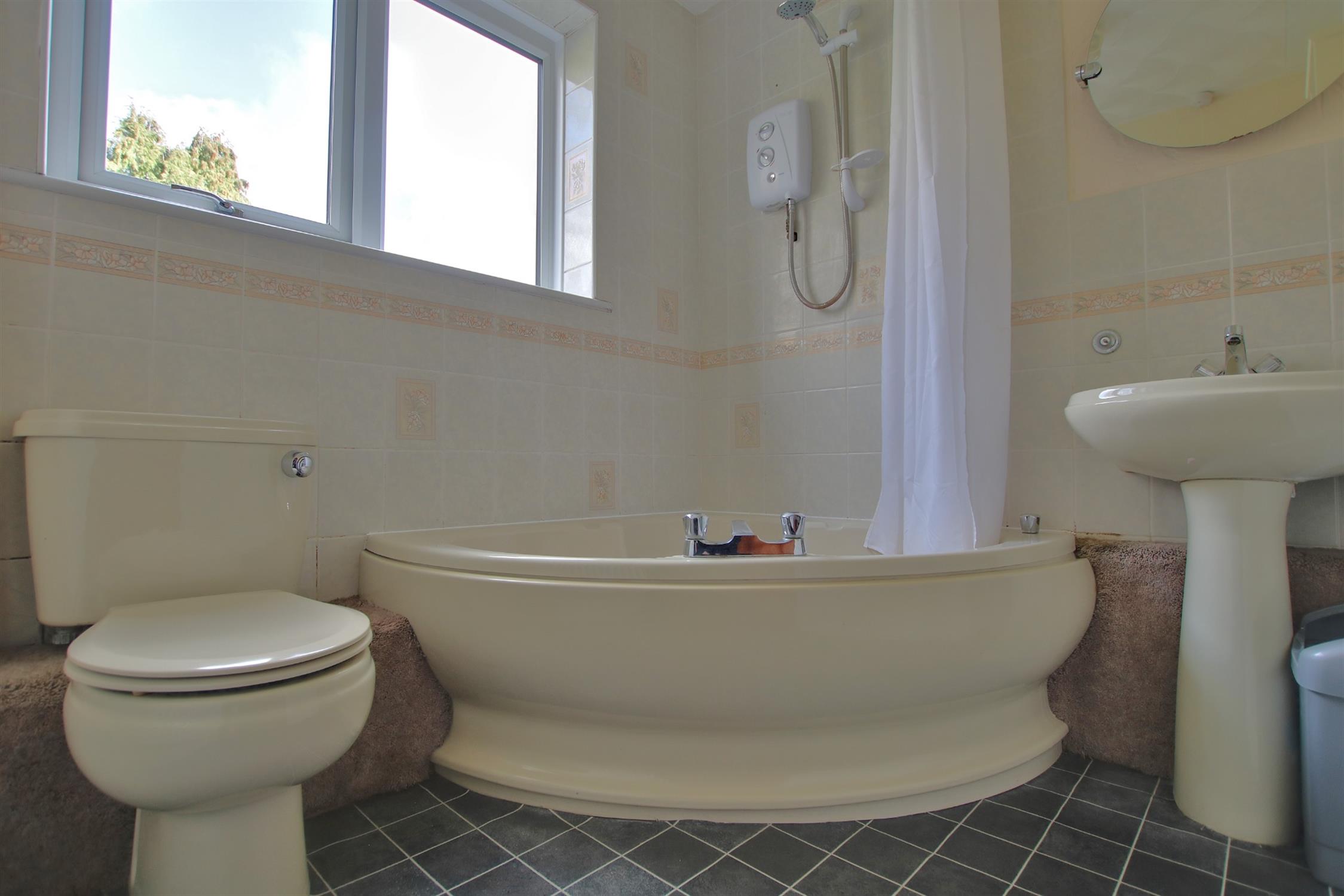 Panelled bath with shower attachment, w.c. and ceramic sink. Radiator. Double glazed window.