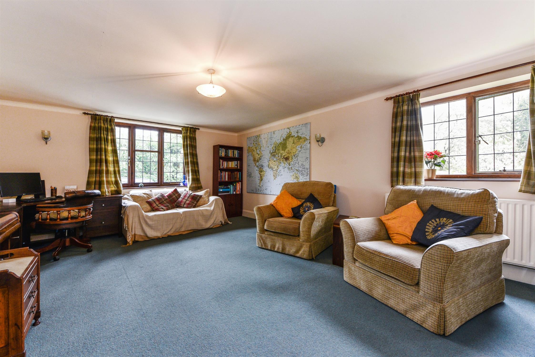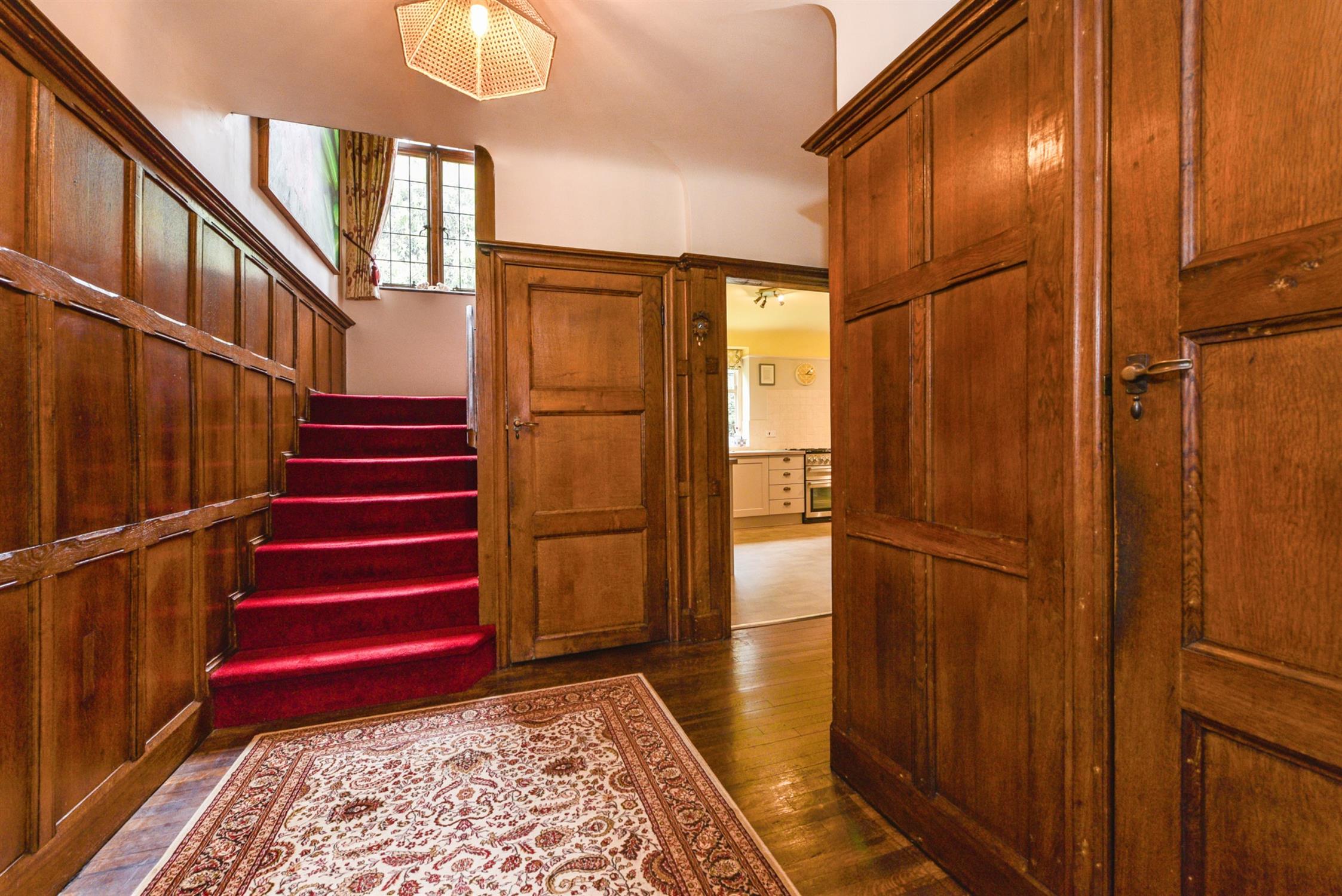 The reception room currently being used as an office provides the most versatile accommodation. Being separate from the main accommodation, the owners comment that when their children were young this provided excellent use as a games room where they could enjoy themselves. There is a modern fitted kitchen which features a range style oven and ample storage. Adjoining the kitchen is a utility room with access to the rear garden. From the first floor landing you can find four/five bedrooms with two en-suite facilities and the family bathroom. The grounds outside surround the entire property with the majority being toward the front and is beautifully landscaped providing well-established mature shrubs and flowerbeds. There is ample parking for many cars which leads to the detached garage. An internal viewing is highly recommended to appreciate the accommodation on offer.