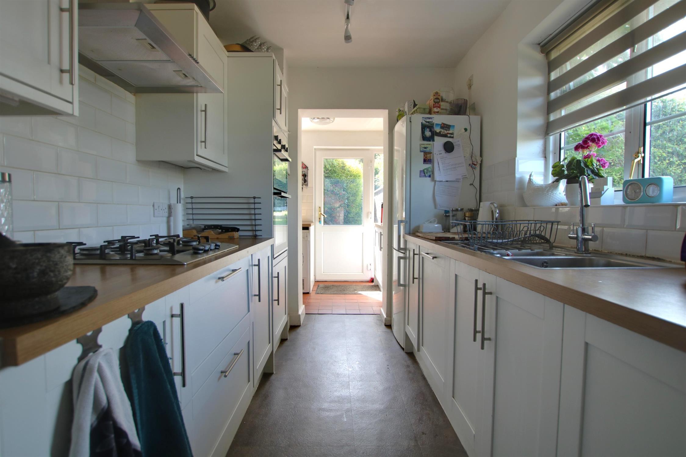 Double glazed window to front aspect. Smooth ceiling. Single drainer one and a half bowl sink unit with mixer tap and cupboard under. A range of matching eye level and base mounted units with wood block work surface over. Built-in double oven. Fitted four ring gas hob with extractor over. Integrated dishwasher. Space for fridge/freezer. Opening to:-