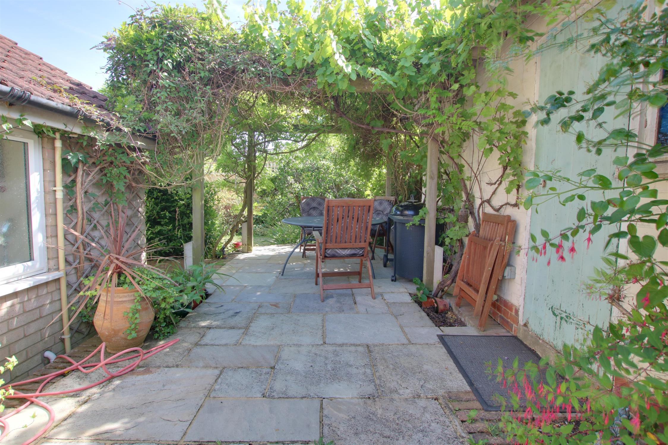 The front garden is principally laid to lawn with path to main entrance door and gated side pedestrian access. The rear garden is in two sections, one to the side of the property which is enclosed by high hedging and laid to lawn with gated access onto the driveway and into the garage. There is a paved patio seating area connecting to the rear garden which is principally laid to lawn with a variety of established plants, shrubs and mature fruit trees. GARAGE with double doors to the front, window and personal door to rear, power and light.