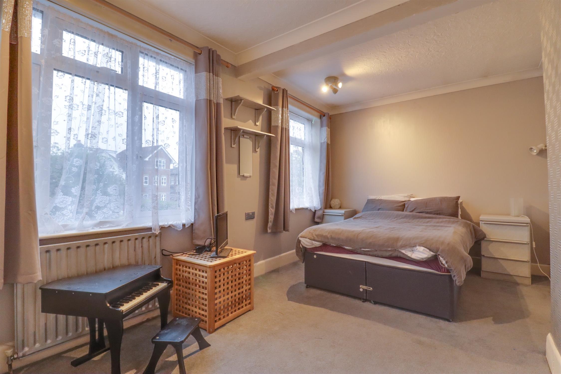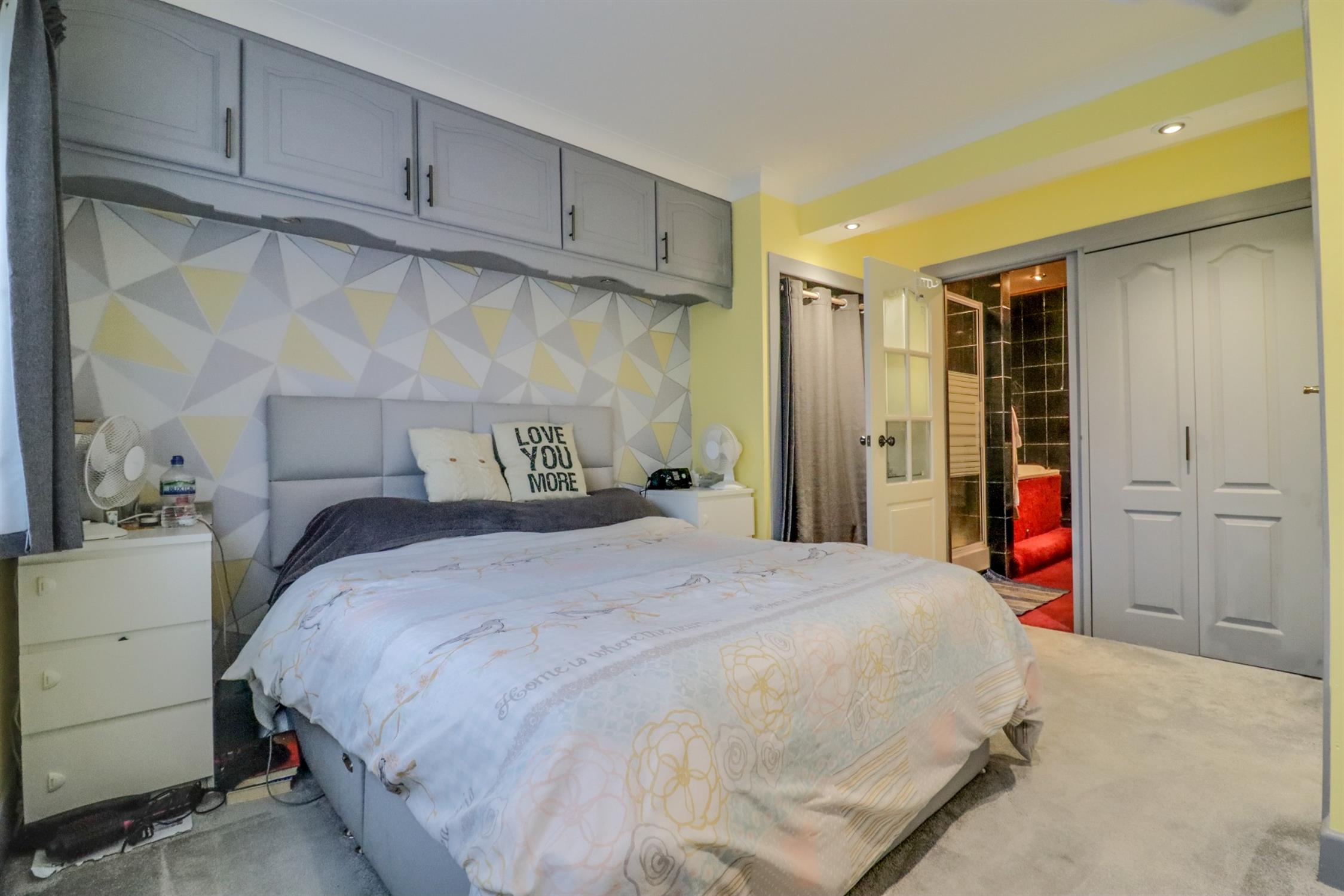 Triple-glazed bay window to front aspect. Radiator. Fitted wardrobes. Carpeted flooring. Loft hatch