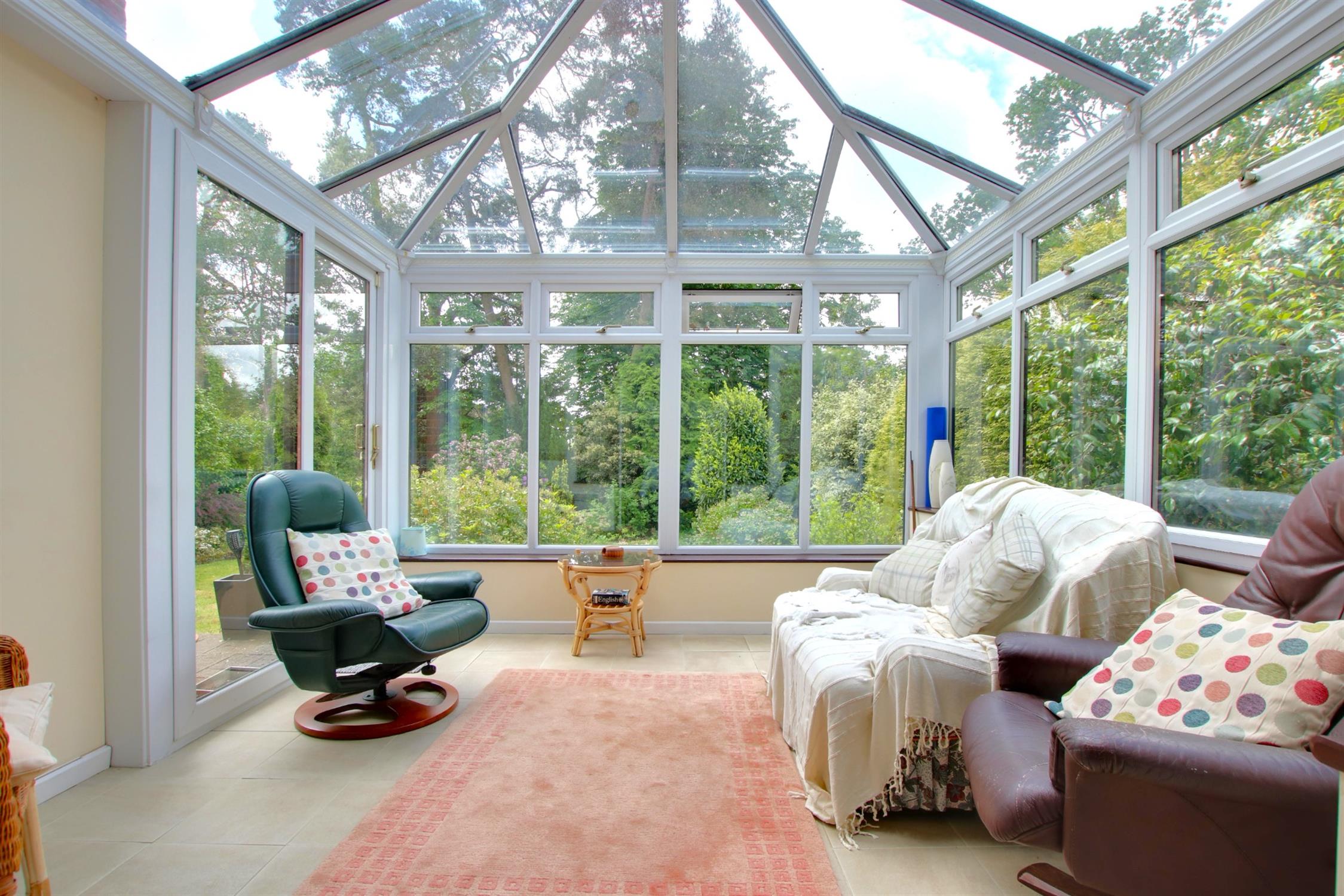 Dual aspect. Leaded double glazed window to front elevation. Picture railing. Smooth plastered ceiling. Two wall light points. Two radiators. Leaded double glazed double doors and windows to conservatory. The room centres on a focal open fireplace.