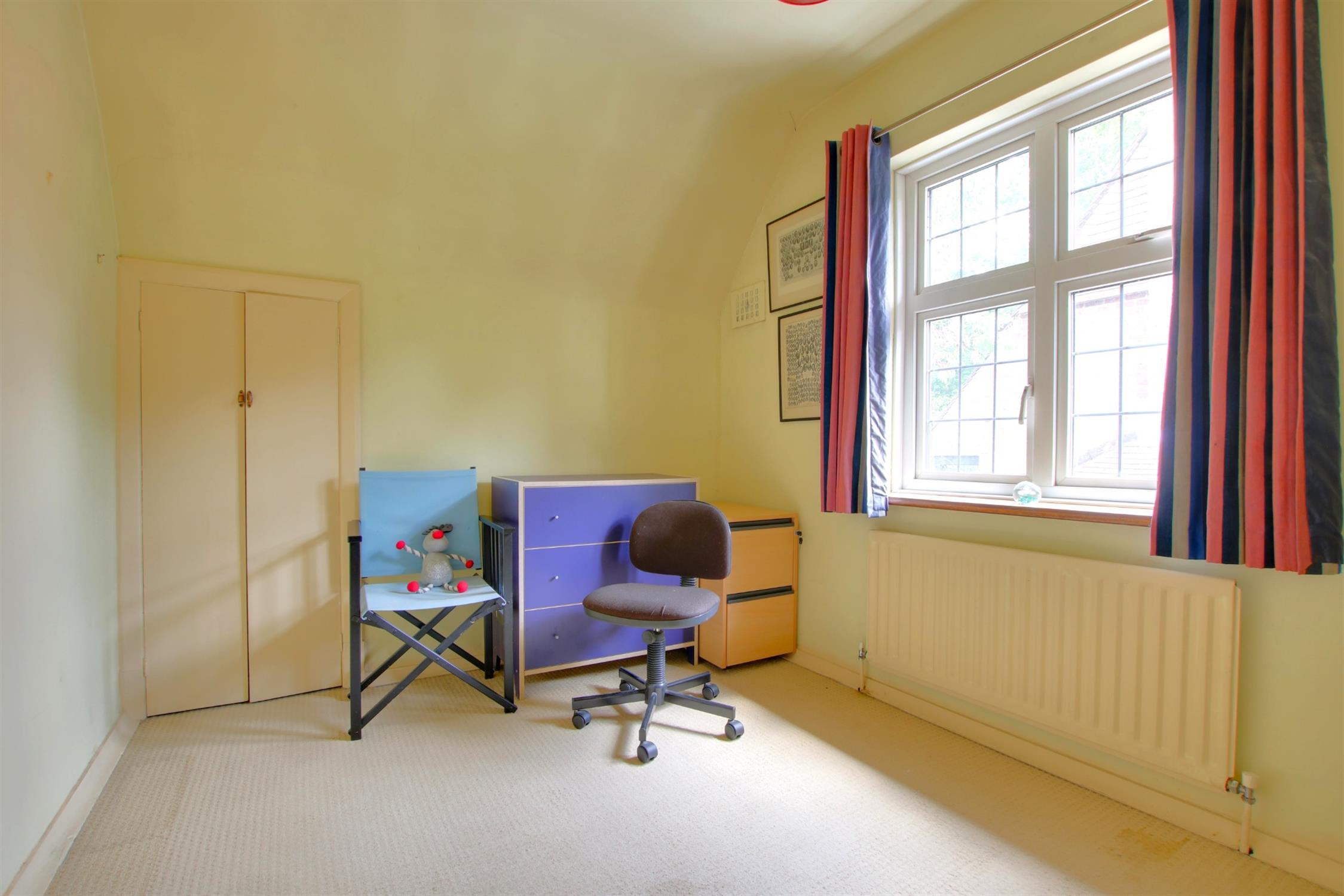 A superbly appointed room with the benefit of leaded double glazed bay window offering views over the rear garden. Radiator. Built-in double width storage cupboard within chimney recess.