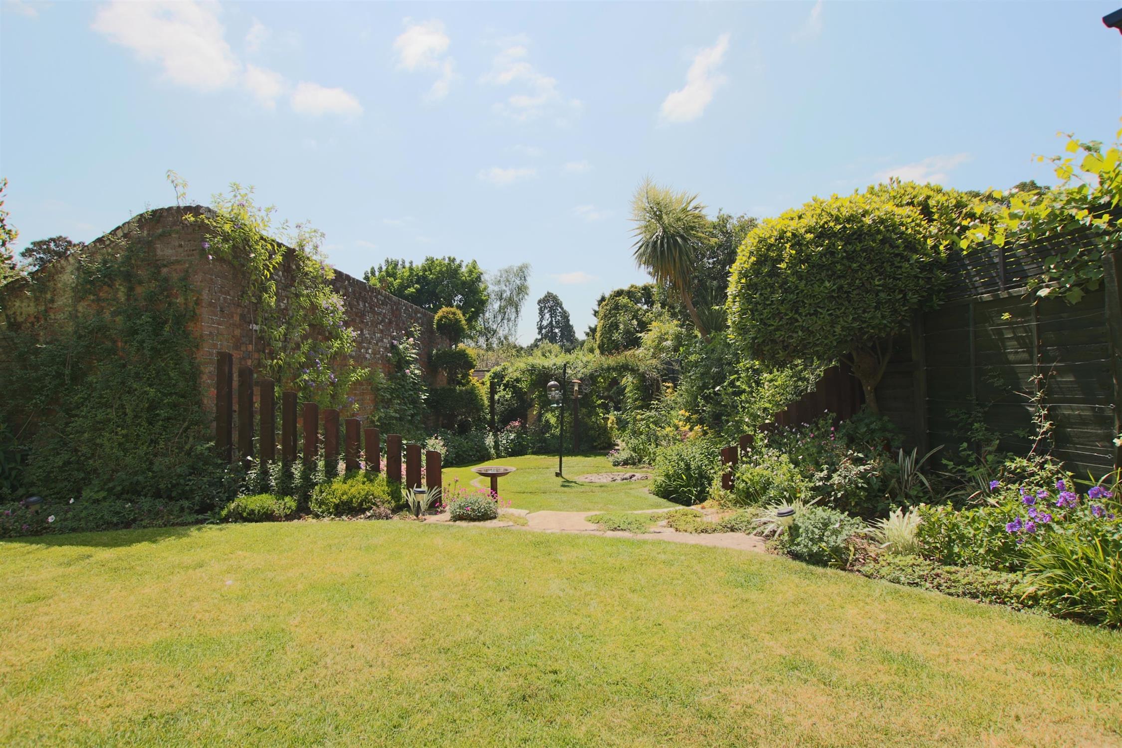 The rear garden has a block patio offering ample space for alfresco dining and entertaining with a range of flowers, shrubs and trees providing a high degree of natural privacy and extensive lawn all of which is enclosed by fence panelling and brick walling.