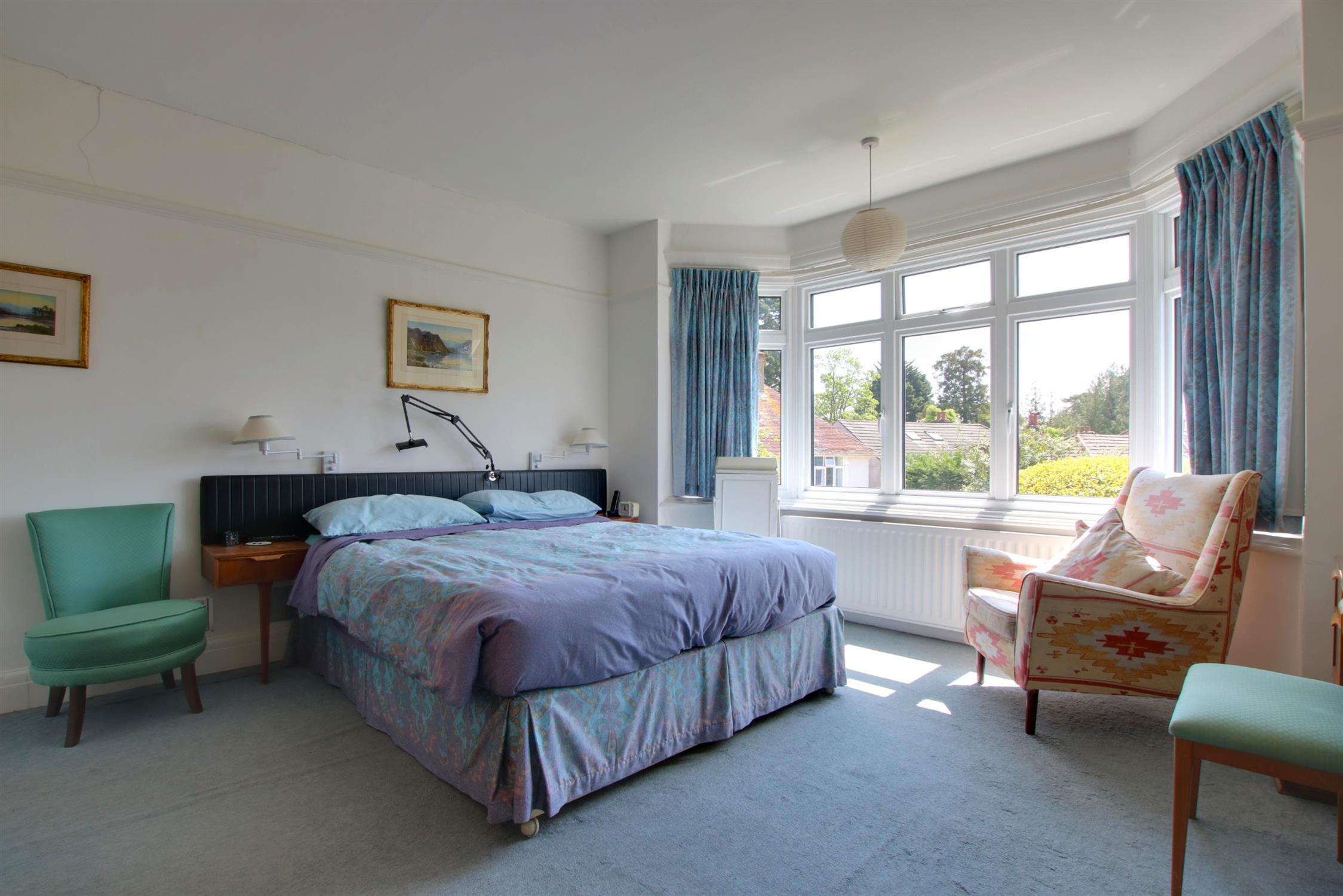Carpeted. Picture rails. High skirting boards. Large walk in closet with extensive shelving and hanging rail.. Triple-glazed bay window to front aspect. Radiator.