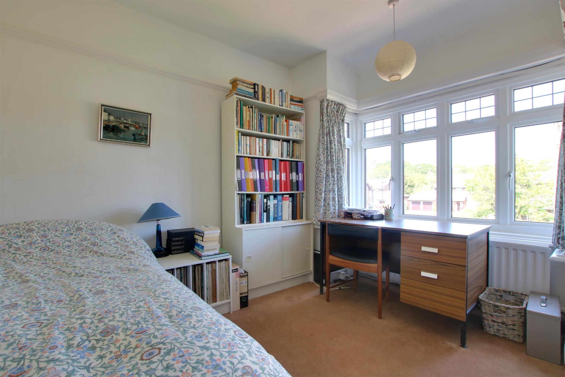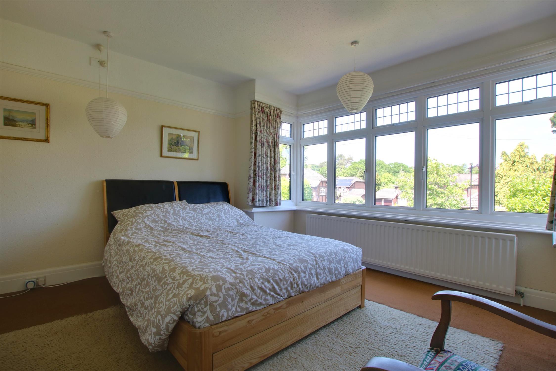 Carpeted. Picture rails. High skirting boards. Built in wardrobe. Triple-glazed bay window to rear aspect. Radiator.