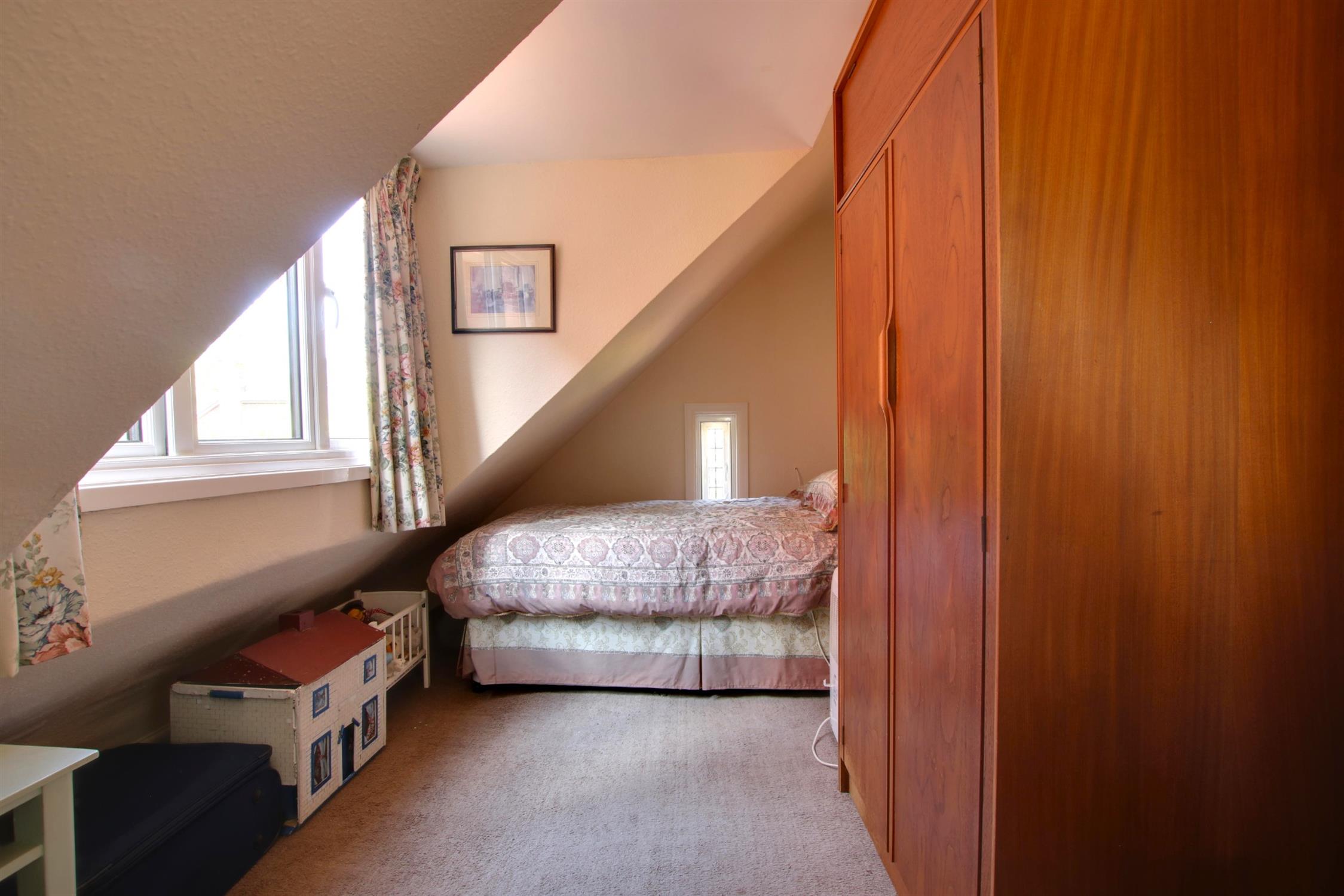 Carpeted. Single-glazed window with secondary glazing to front aspect. Triple-glazed window to side aspect. Radiator.