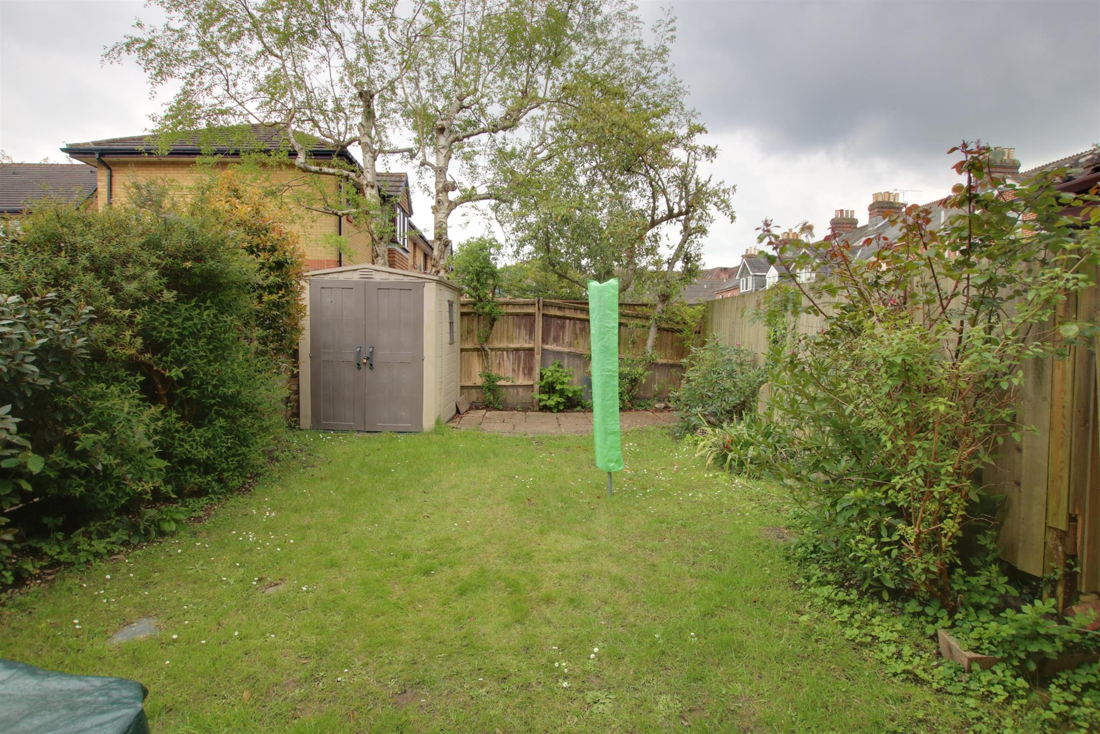 The rear garden is fully enclosed and is principally laid to lawn with paved patio seating areas. Outside tap. Garden shed. Established borders.