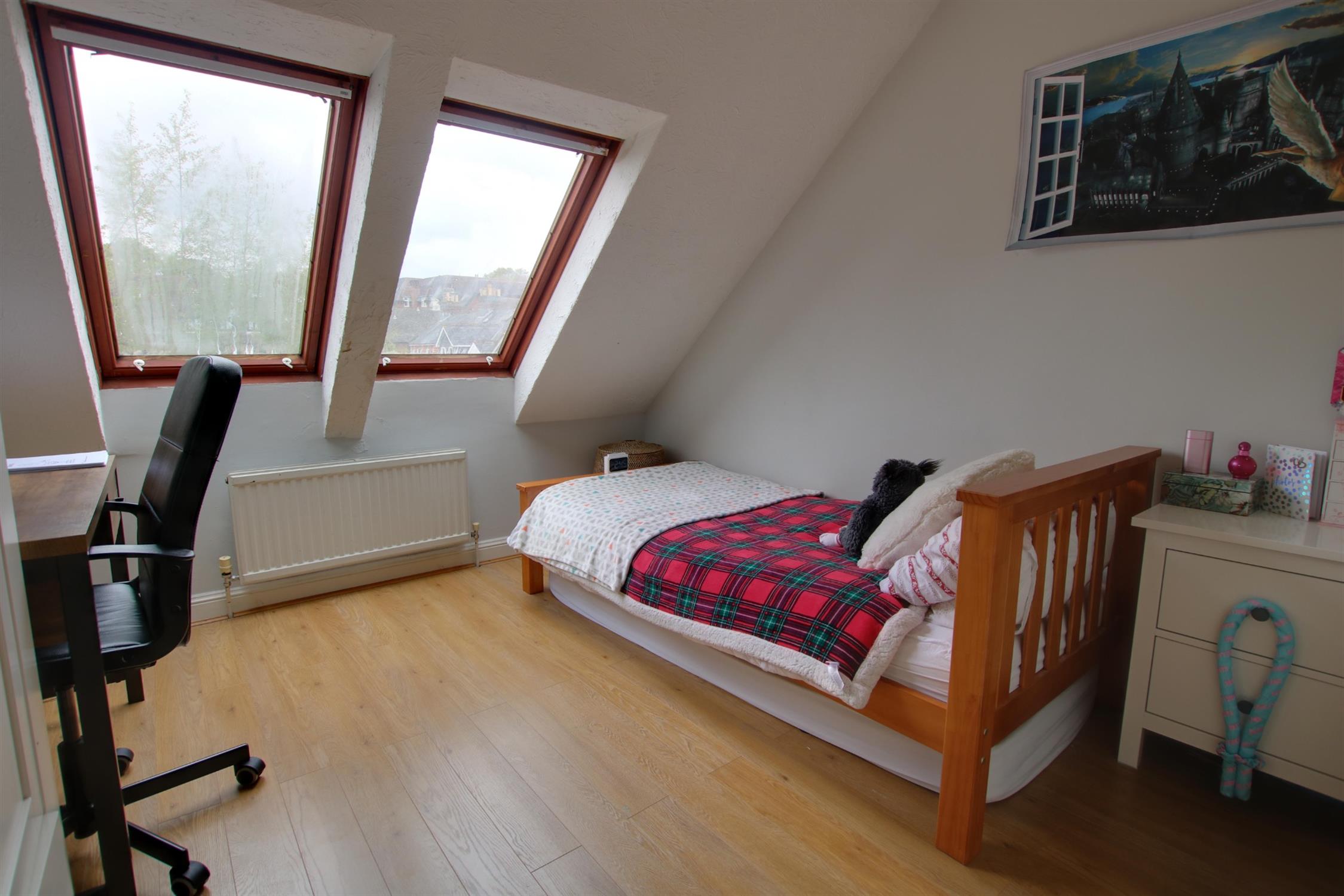 Two double glazed velux windows to rear aspect. Coving to textured ceiling. Radiator. Built-in wardrobe. Laminate flooring.