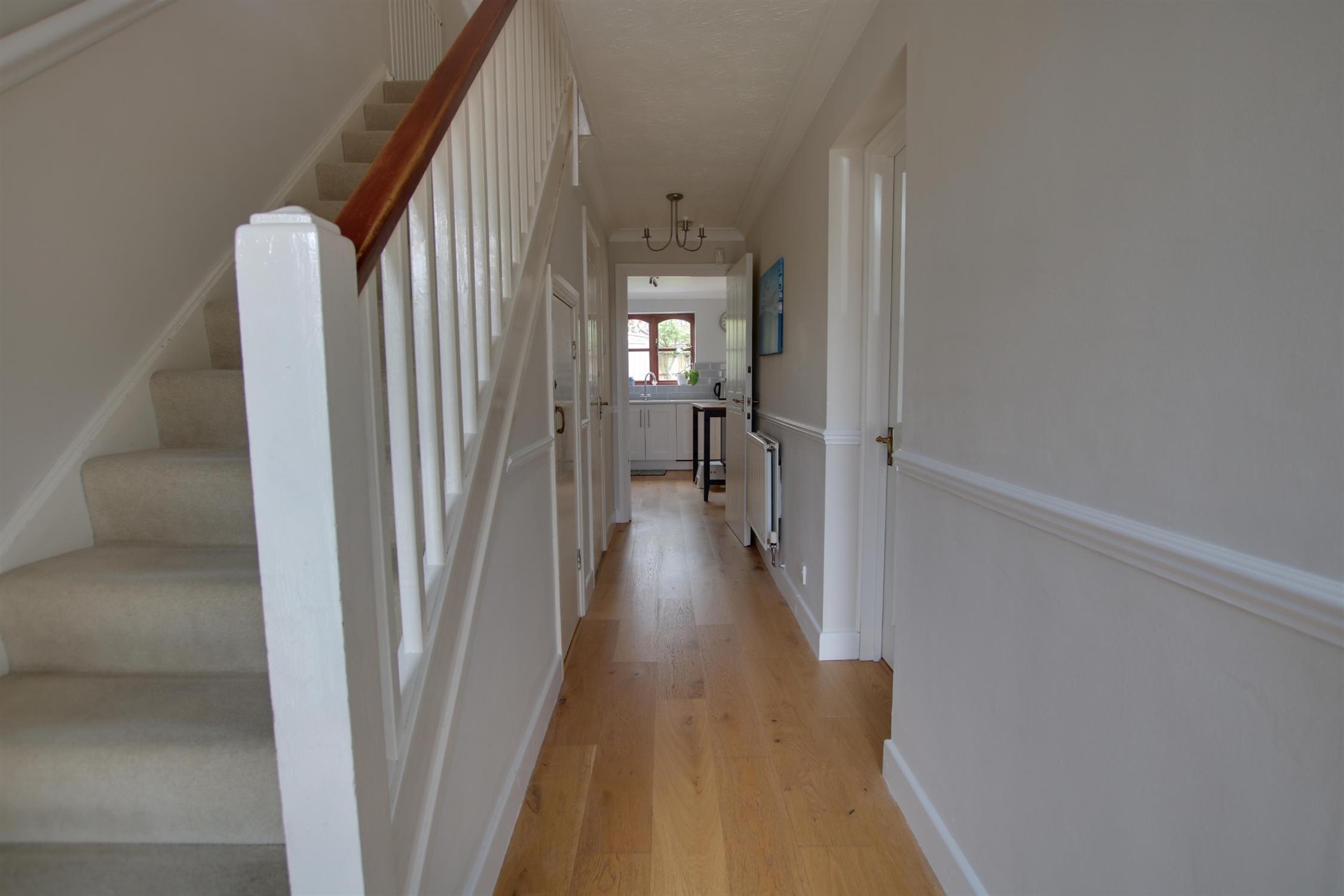Coving to textured ceiling. Engineered wood flooring. Radiator. Stairs to first floor. Under stairs storage cupboard. Doors to all rooms.