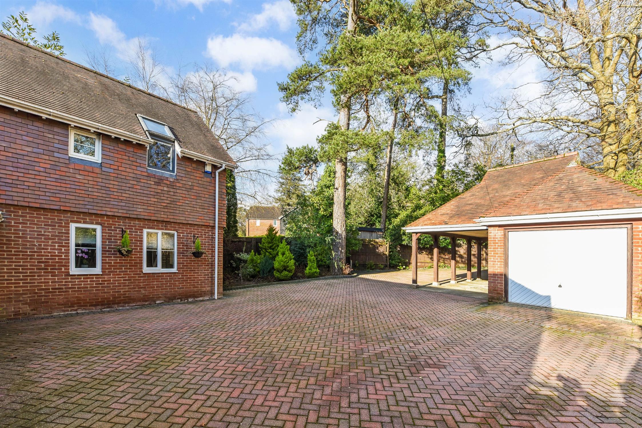 The front garden is laid to herringbone block paviour and offers off road parking for multiple vehicles. Established borders which are populated with a variety of mature plants, shrubs and trees.