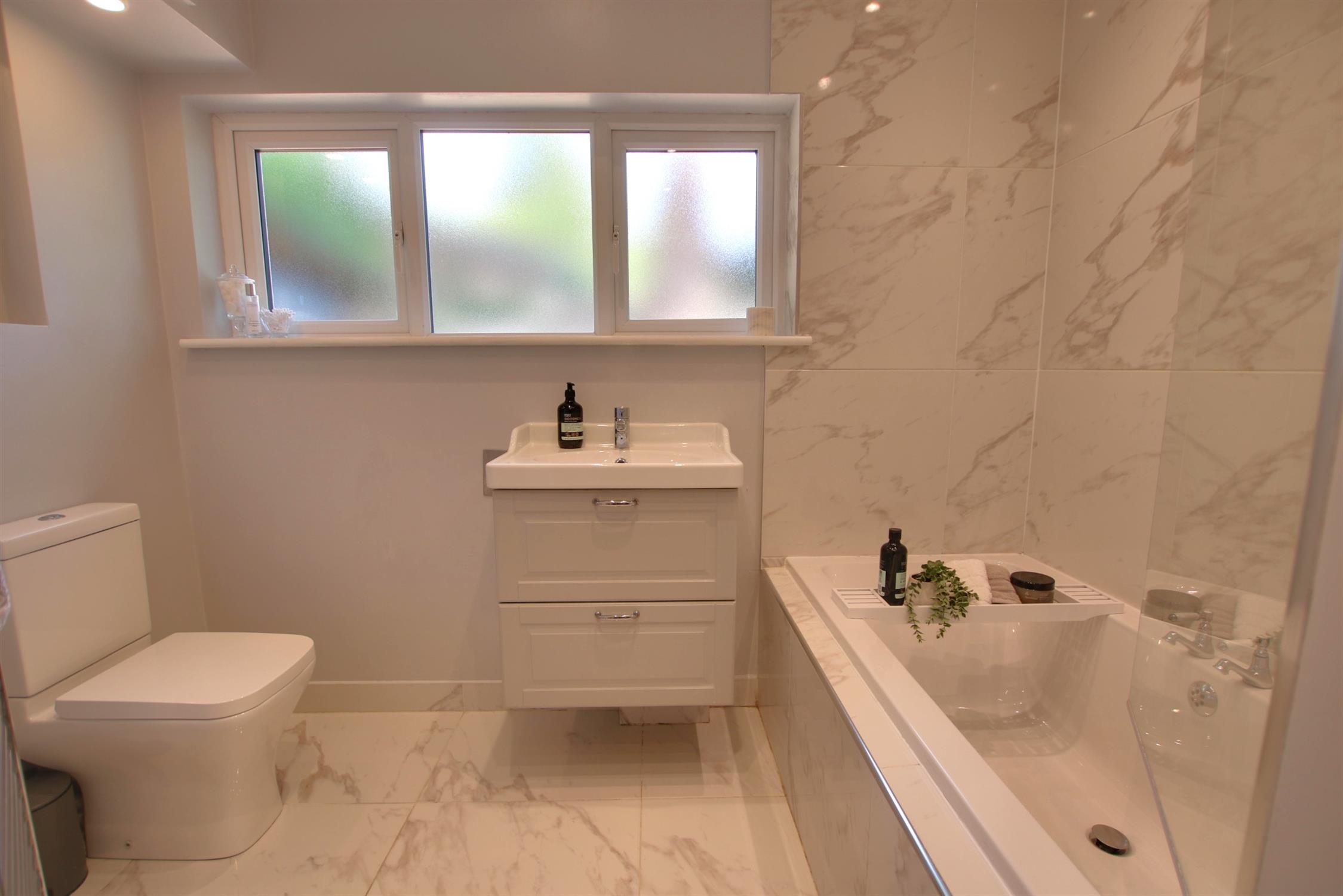 Double glazed obscure glass side window to front aspect. Window to side aspect. Smooth ceiling with recessed lighting. Loft hatch. Storage cupboard. Doors to all rooms.