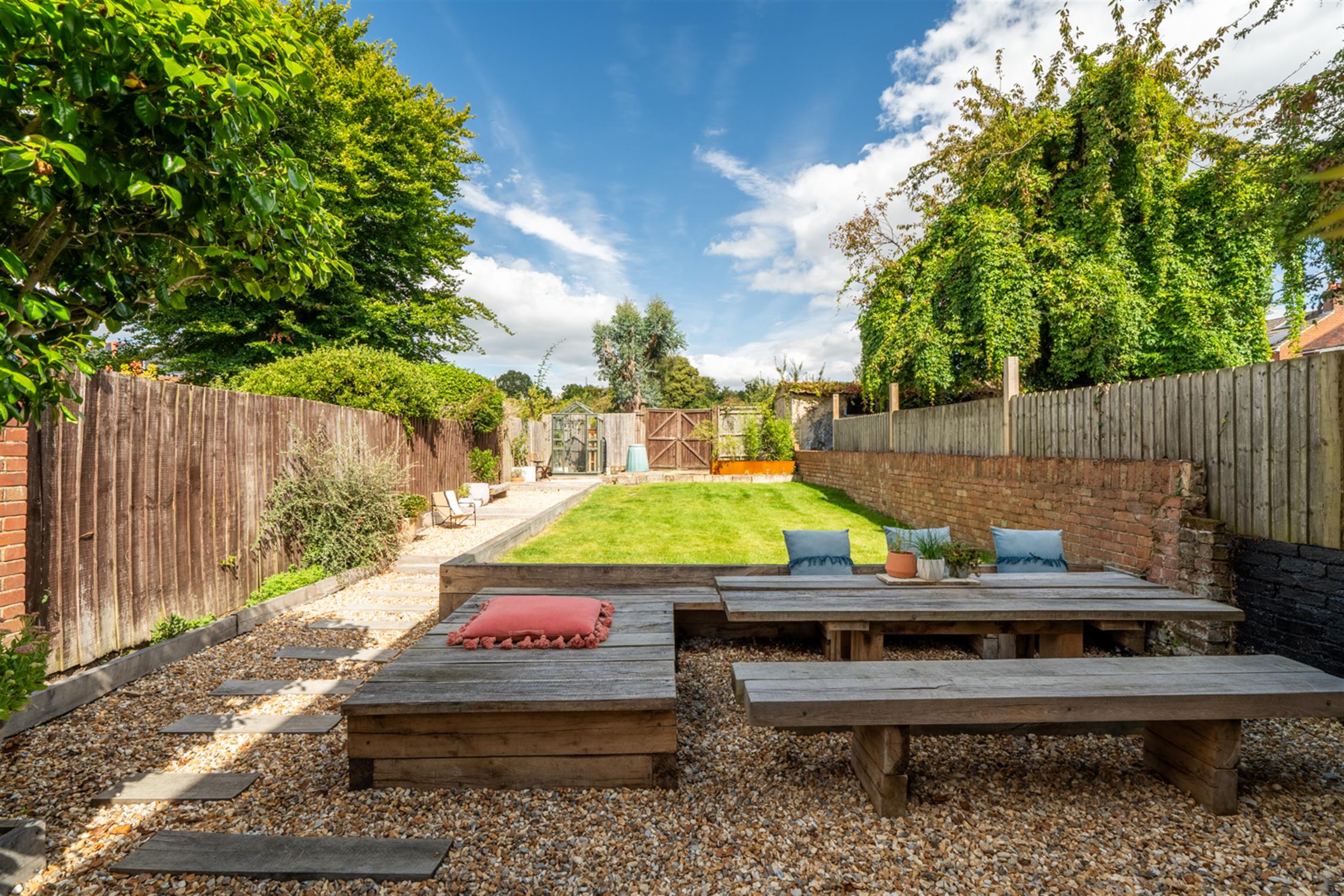 To the front of the property is a walled garden with path to the front door. Rear garden is of a good size with shingle patio area steps leading to the Lawn grass and access at the rear. Access to the side.
