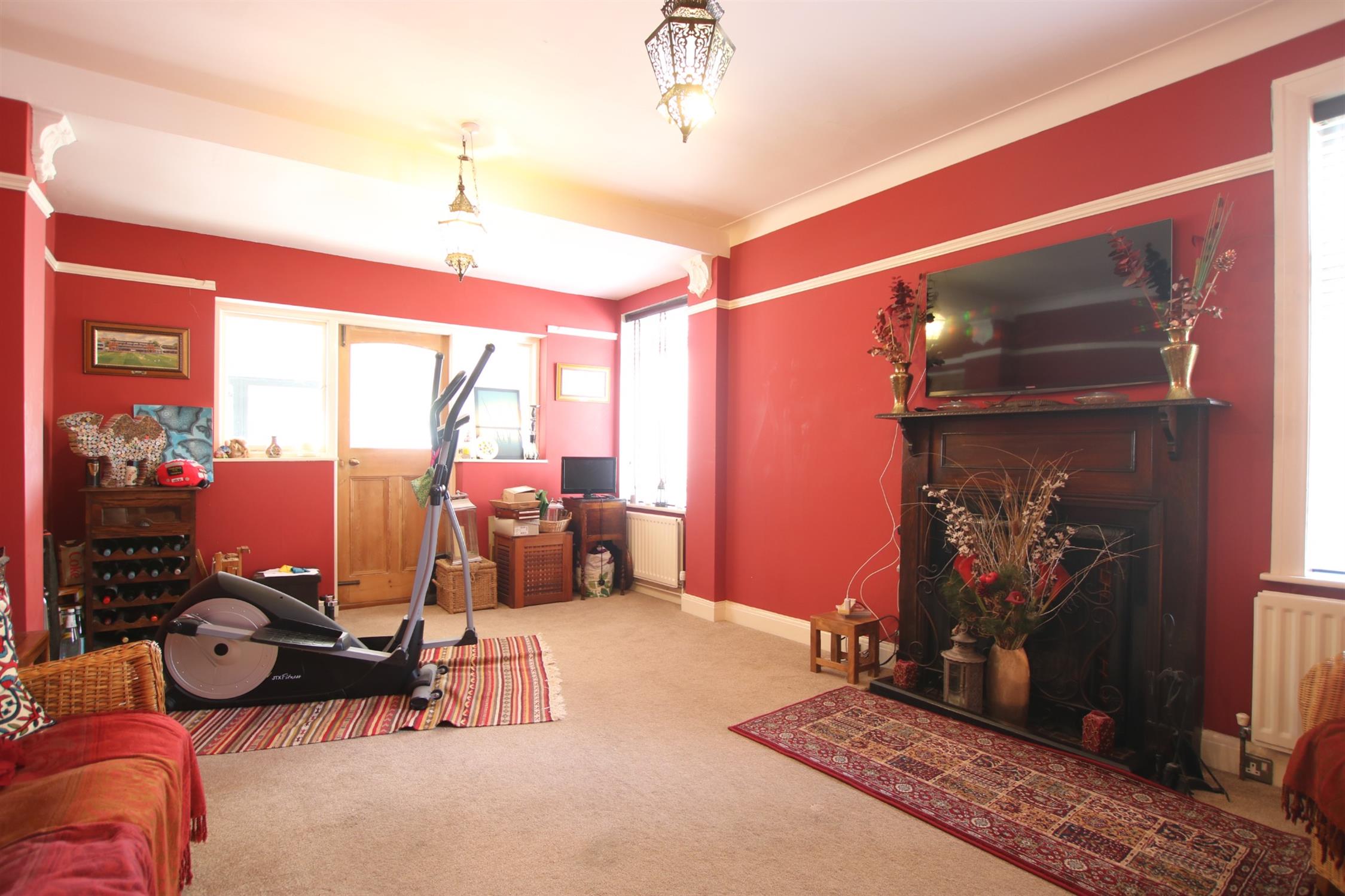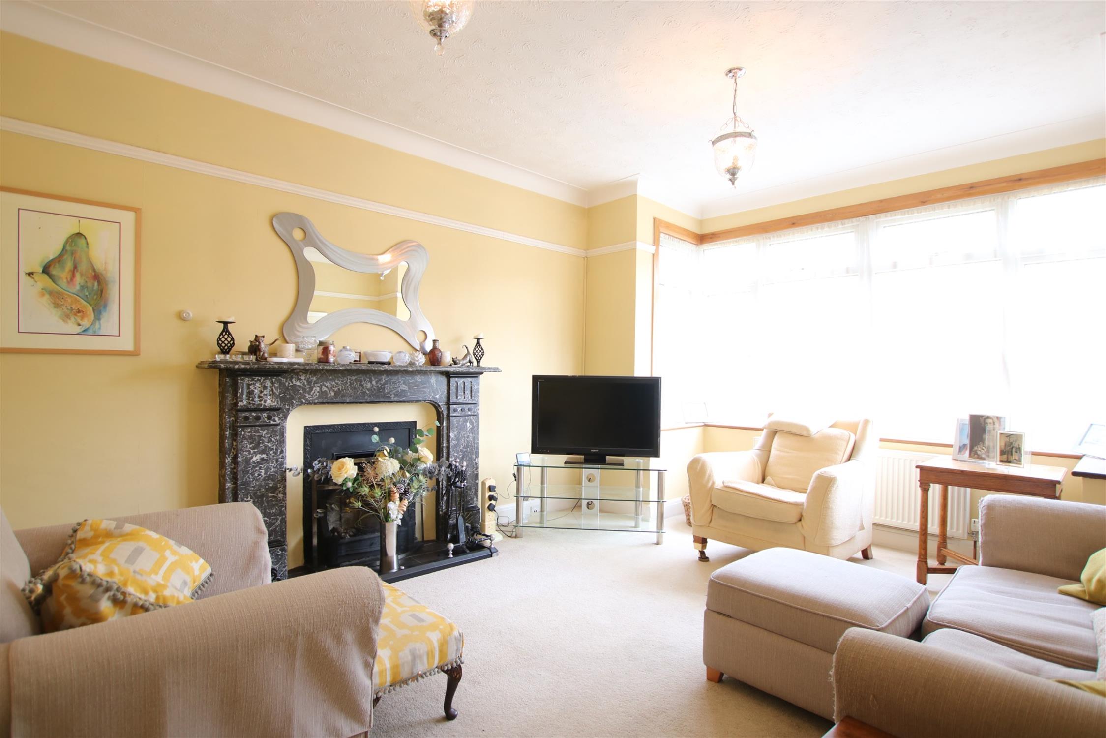 Large double glazed bay window to front elevation providing a high degree of natural light. Coved ceiling. Picture railing. Feature open working fireplace with tiled hearth and impressive marble surround and mantel.