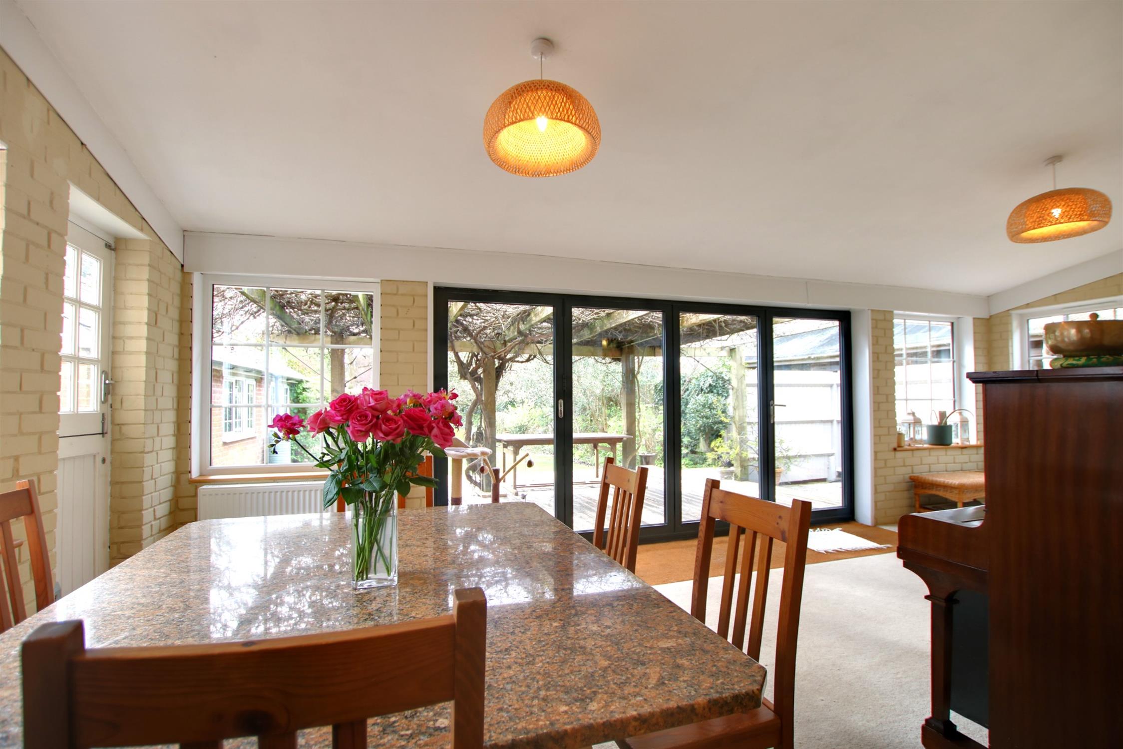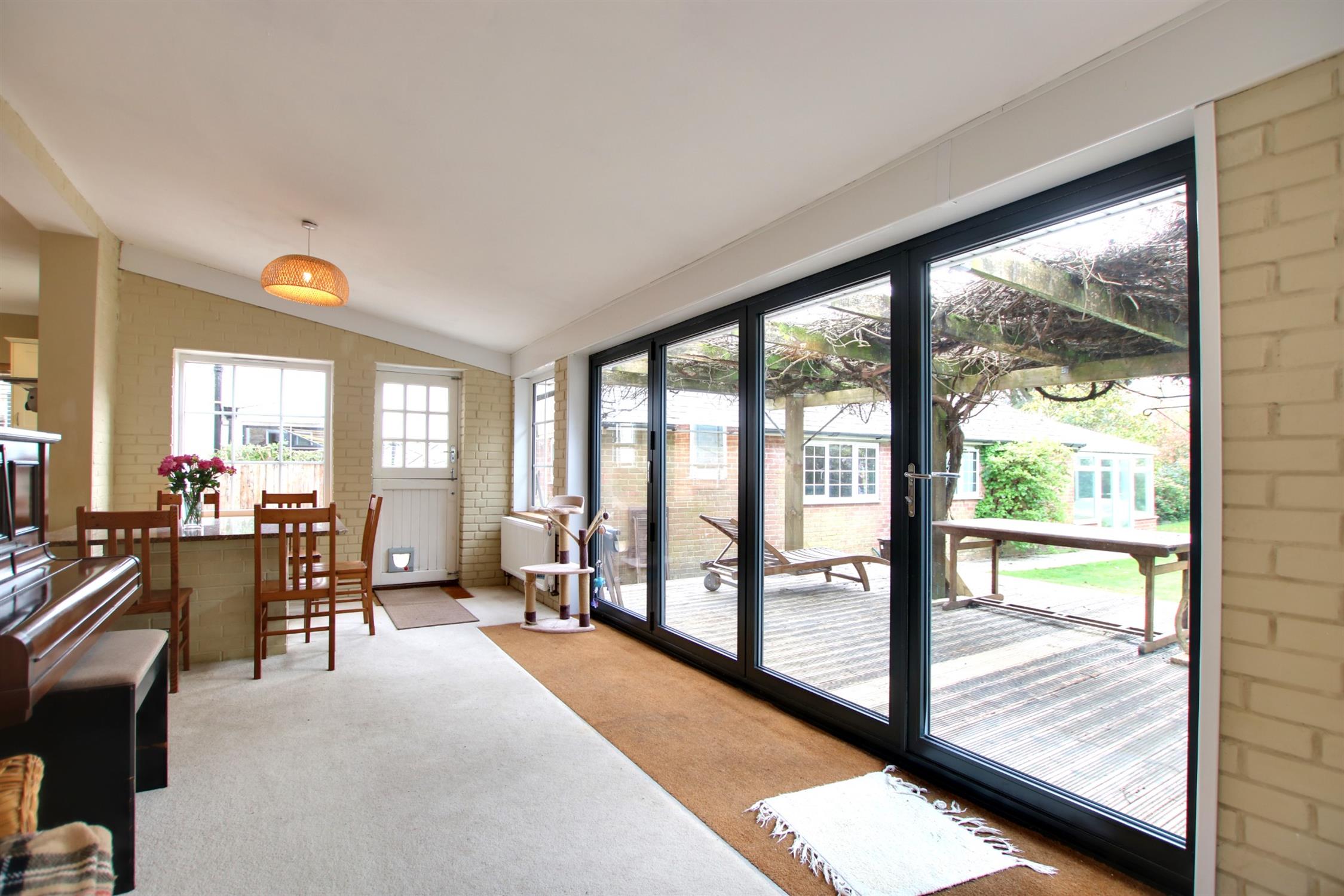 This extensive room has undergone notable improvements and forms part of the natural hub of this family home. Two radiators. Five double glazed windows and bi-fold doors offering direct access to the deck. In the last year the owners have carried out considerable work to the roof structure and is offered with the residue of a 20 year guarantee.