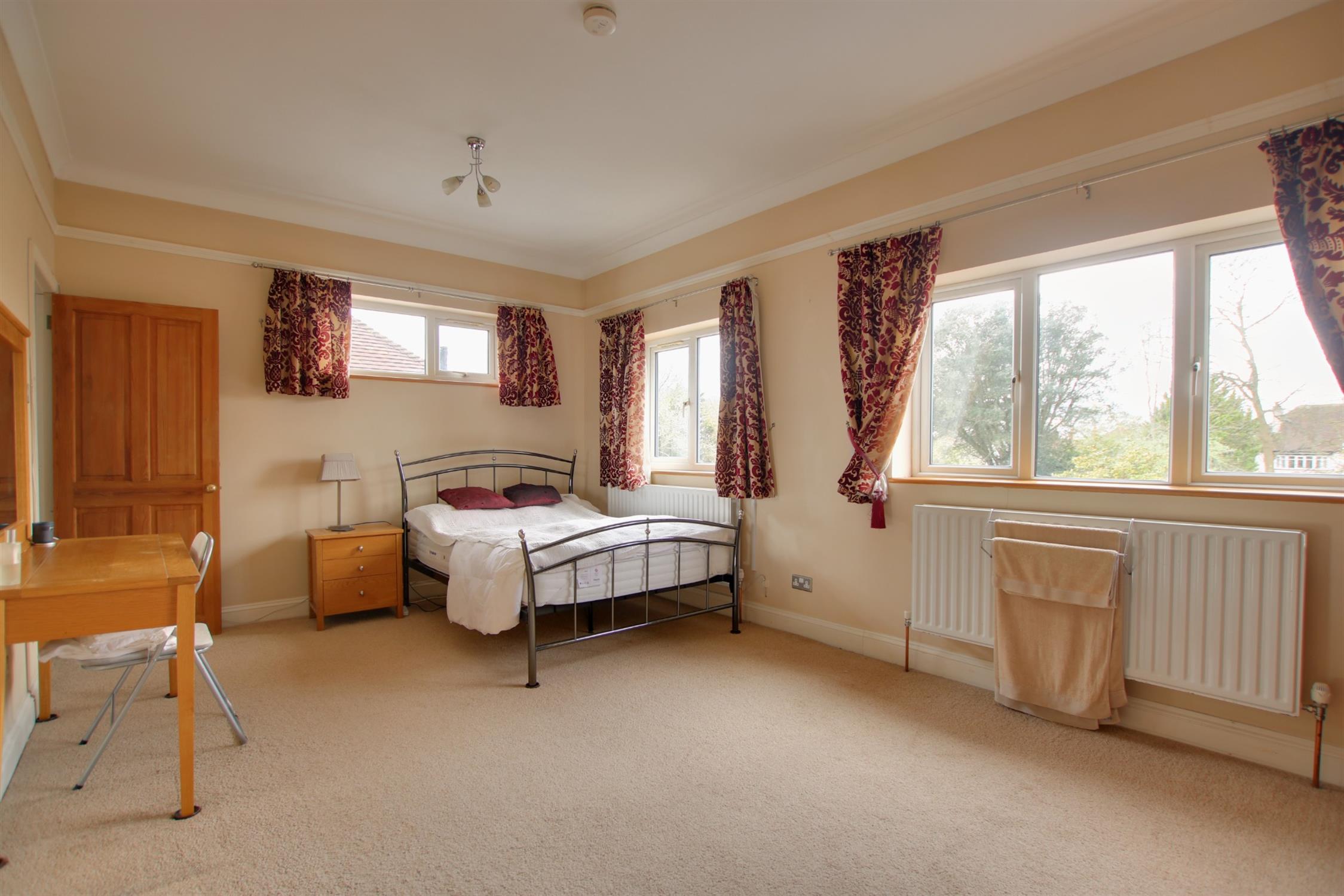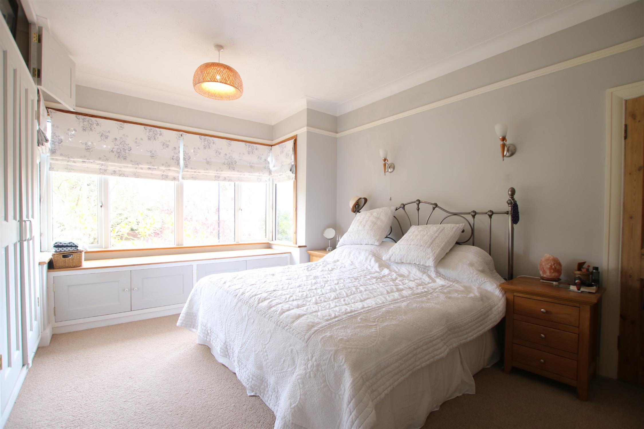 A comprehensive range of built-in wardrobes providing useful hanging and shelf storage. Large double glazed bay window finished with window seat providing additional storage under. Two wall light points. Radiator. Picture railing and coving.