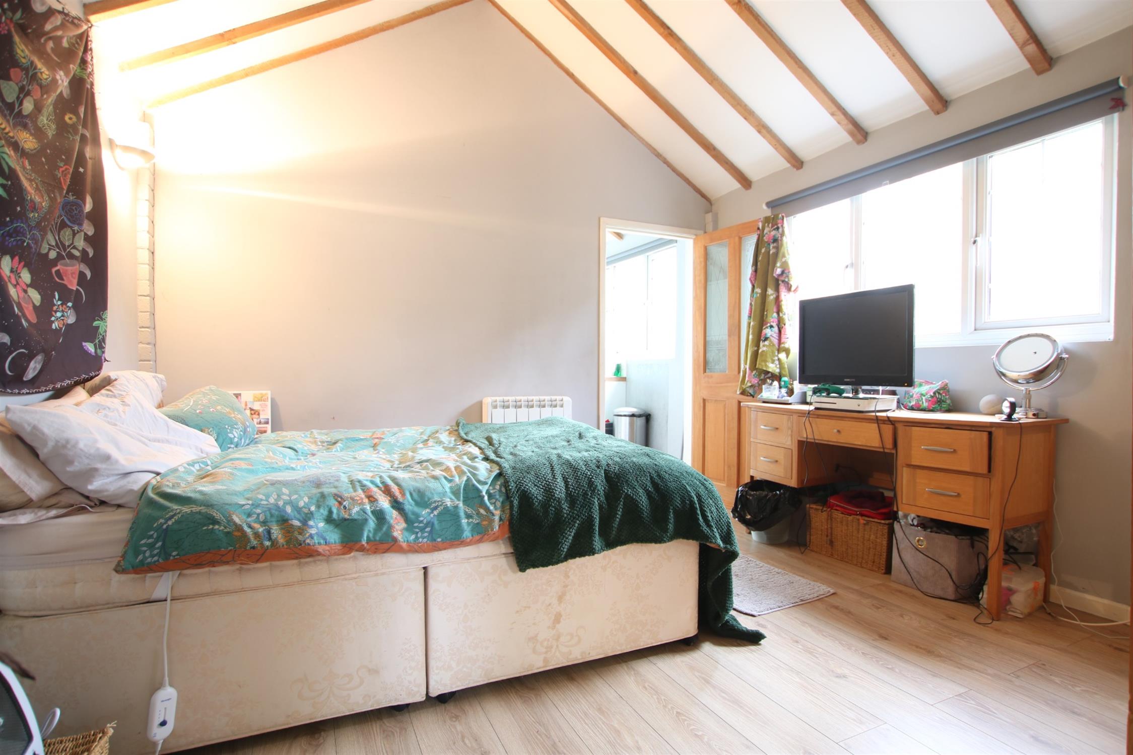 A delightful double bedroom offering views over the rear garden and access to a private balcony. Double glazed window and double glazed double doors. Coved ceiling and picture railing. Radiator.
