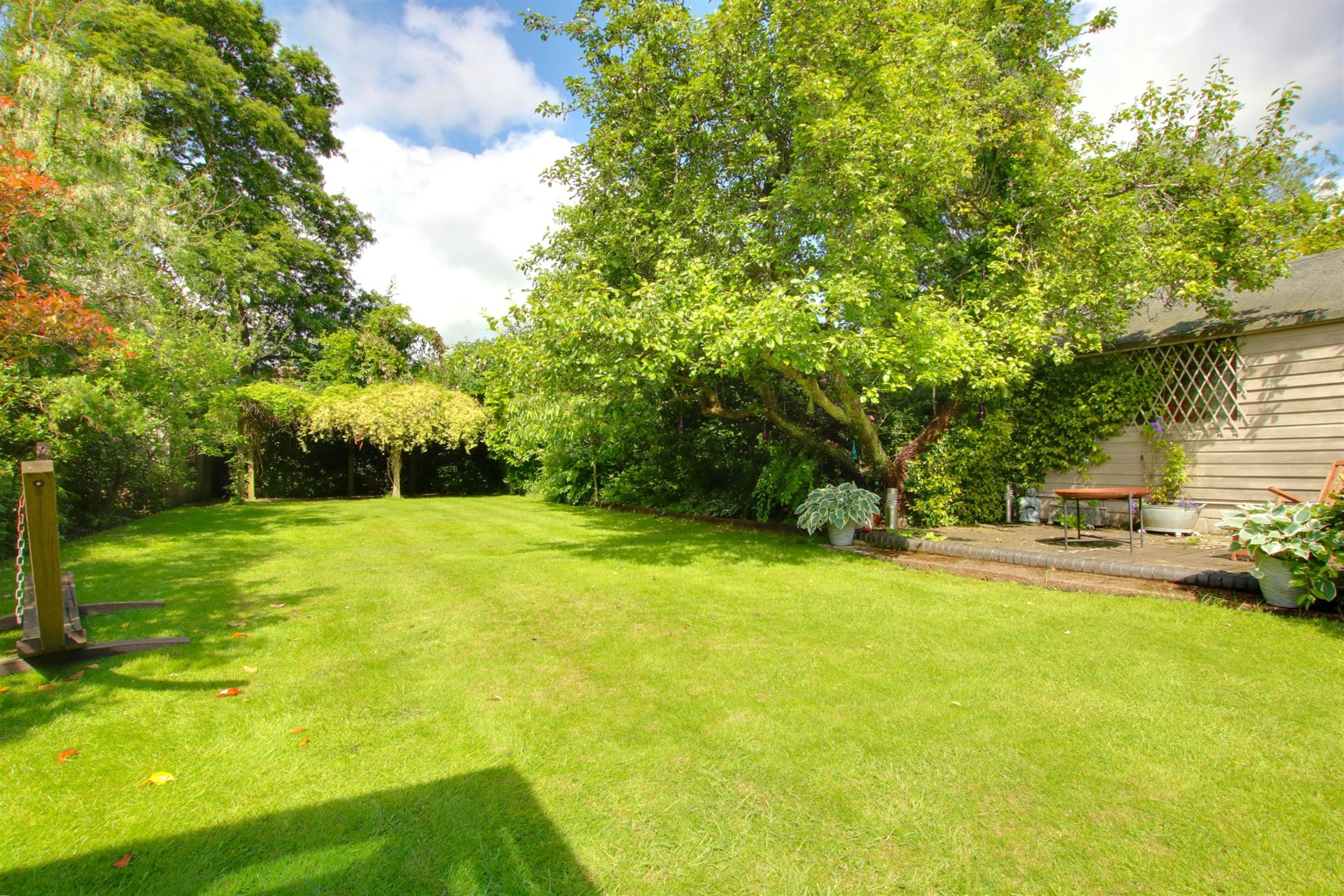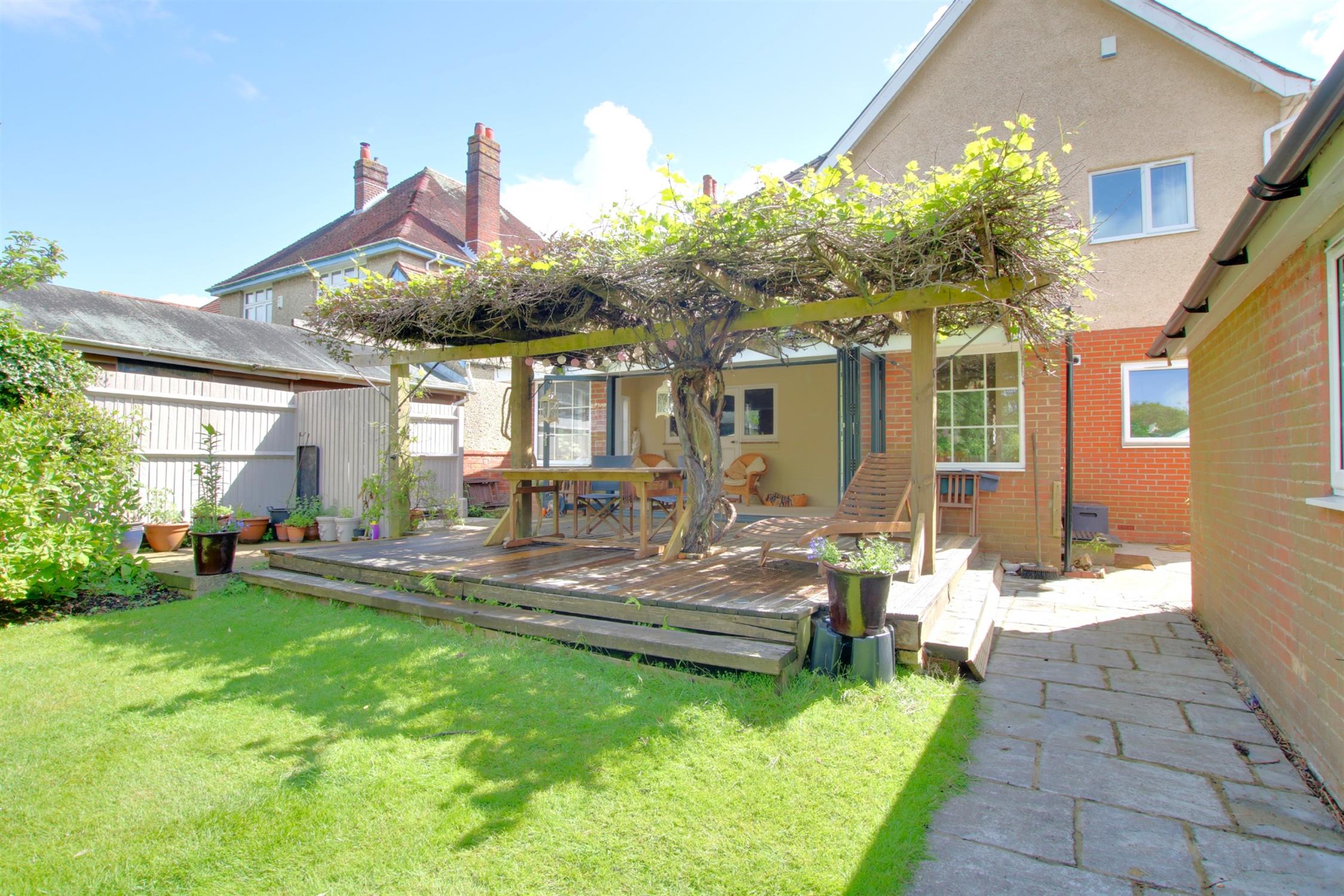 The rear garden is undoubtedly a significant feature which enjoys a level garden with the benefit of a southerly and westerly aspect. A high degree of natural screening is provided with mature flowers, shrubs and trees to the perimeter. Extensive lawned area as well as established borders. Towards the rear of the garden is a further patio seating area with the benefit of marine quality stainless steel lighting and at the very rear is a timber constructed pergola with raised vegetable planters. In addition there are two substantial detached timber sheds and immediately adjacent to the rear of the property is an extensive decked area with vine trimmed pergola providing dappled shade from the sun. The decked area is extensive and provides the ideal space for outdoor entertaining and dining.