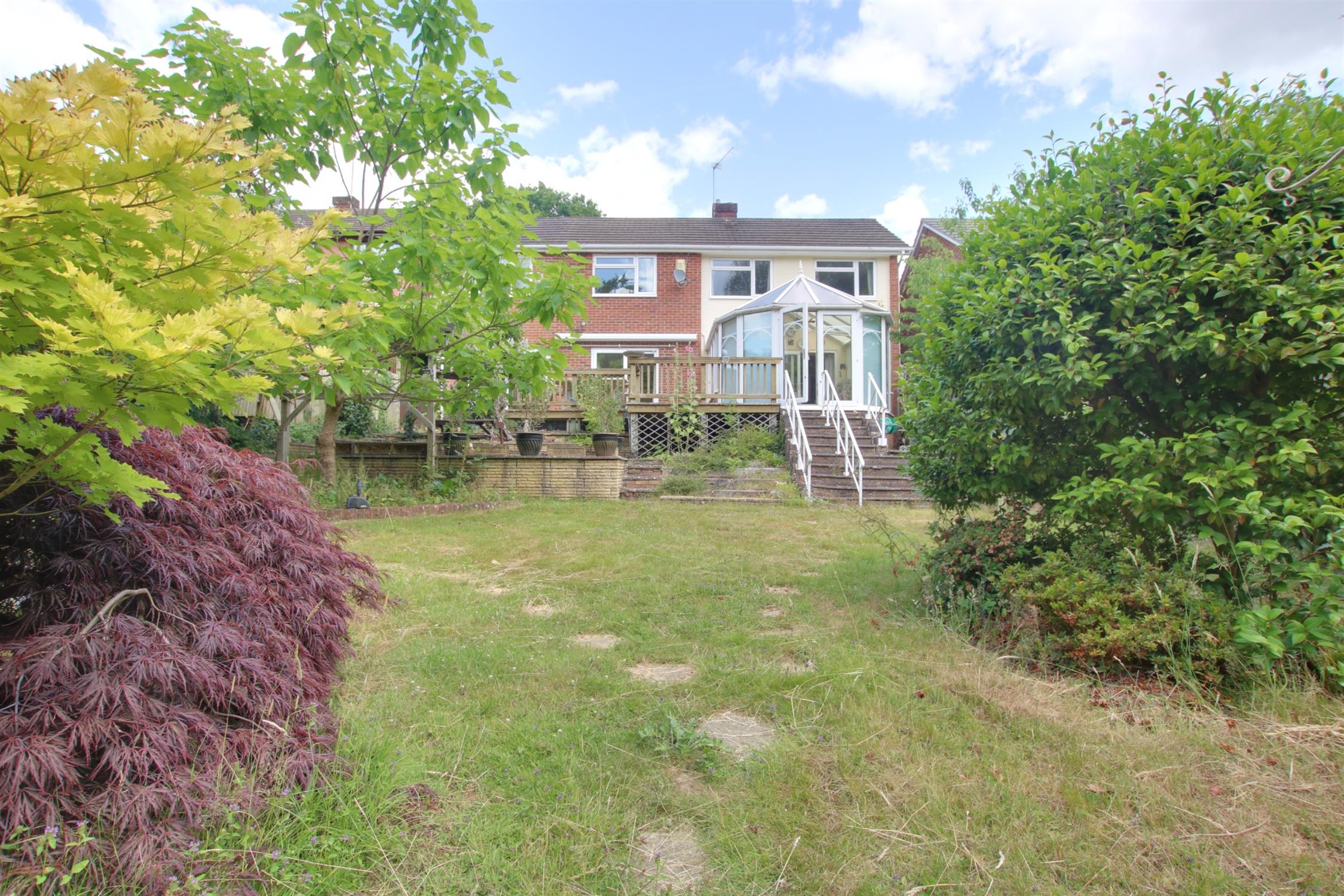 The rear garden has a large decked area immediately to the rear of the property as well as further lower patio area with pergola over. Steps lead to the rear garden which is predominantly laid to lawn with a wide variety of mature flowers, shrubs and trees providing a high degree of natural privacy. There is a sunken pond, detached timber shed and greenhouse. The property has the benefit of backing onto Bassett Wood and as such offers a good degree of natural privacy.