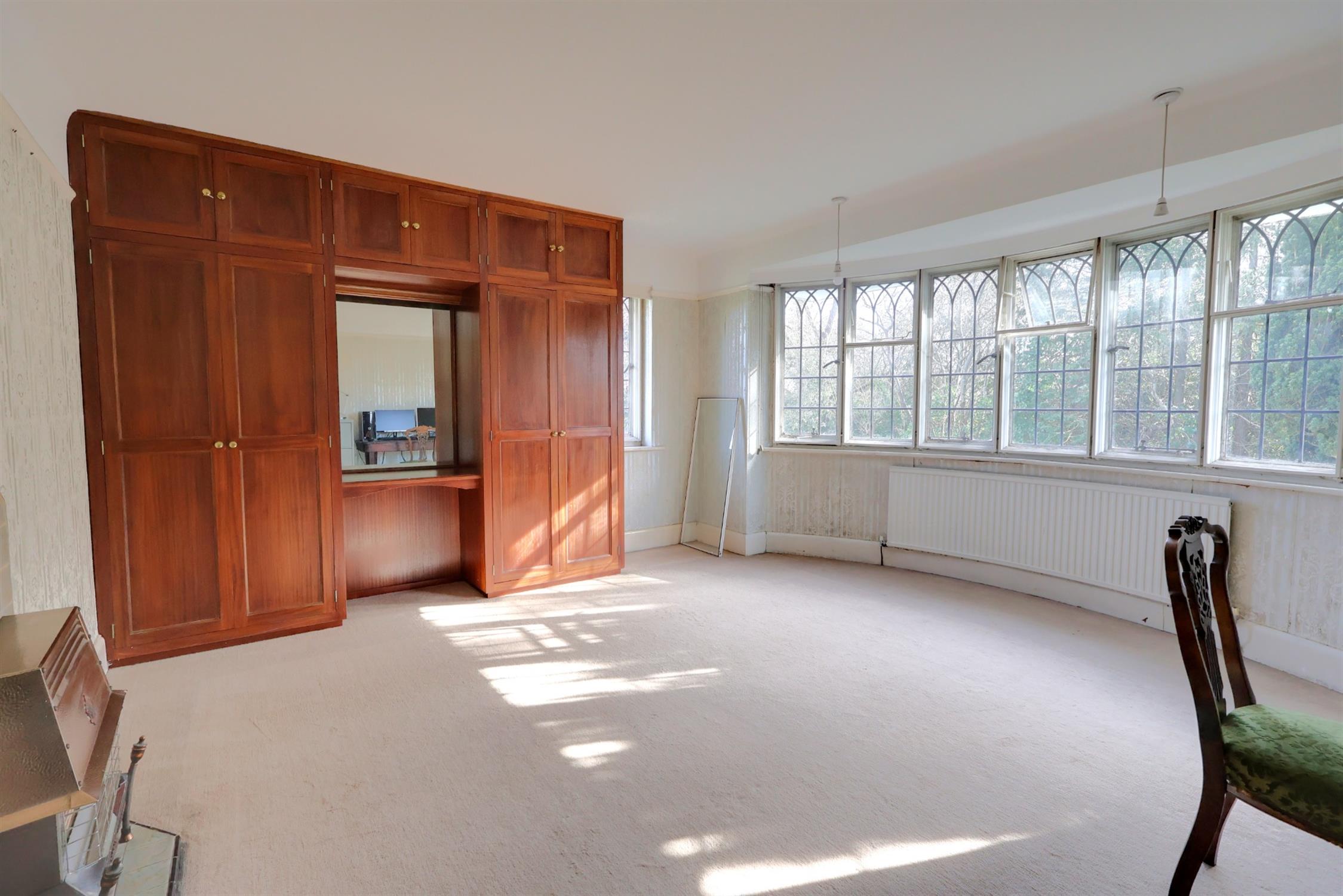 Impressive leaded secondary double glazed bay window. Curved radiator. Further radiator. Feature fireplace with fitted gas fire. Built-in wardrobes.