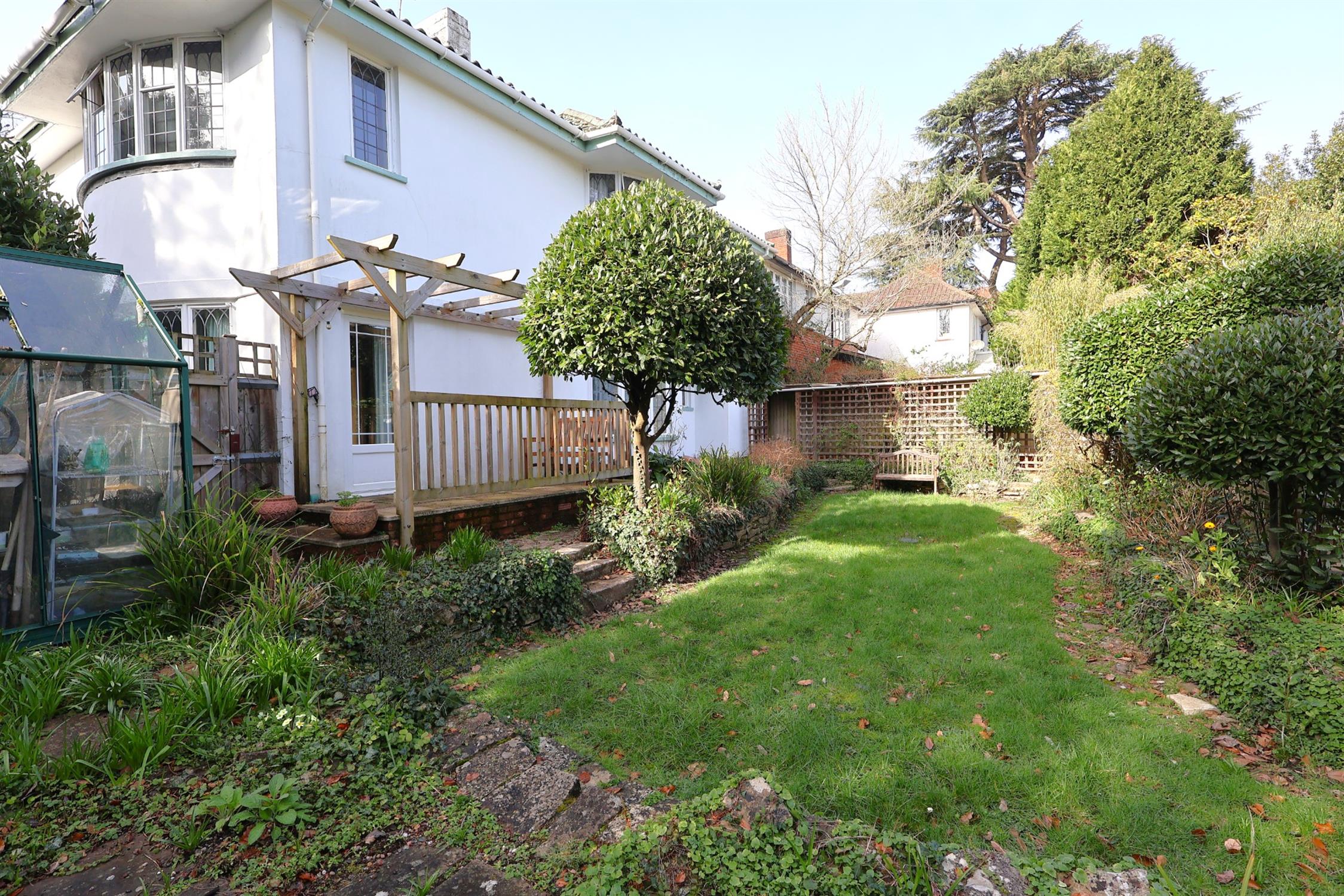 To the front of the property is a sunk garden trimmed with dry stone walling. The gardens being primarily laid to lawn with a circular planted feature centrally located. There is a wide range of mature established plantings providing a good degree of natural privacy. Crazy paved pedestrian pathway provides access from Bassett Avenue. Gated side access to the rear garden. The rear garden benefits from a raised patio area with a timber pergola over. The gardens being primarily laid to lawn with dry stone walling and planted borders. Detached greenhouse. The gardens are enclosed by partial walling and mature shrubs and trees providing a good degree of natural privacy. There is gated access to a covered walkway which has a trellis finish and leads to the detached garage. DETACHED DOUBLE GARAGE With retractable roller doors and benefitting from power and light with a courtesy door to side elevation. Attached to the garage is a lean-to greenhouse which provides access to the cellar which is located beneath the garage useful for the storage of leisure equipment and garden equipment.