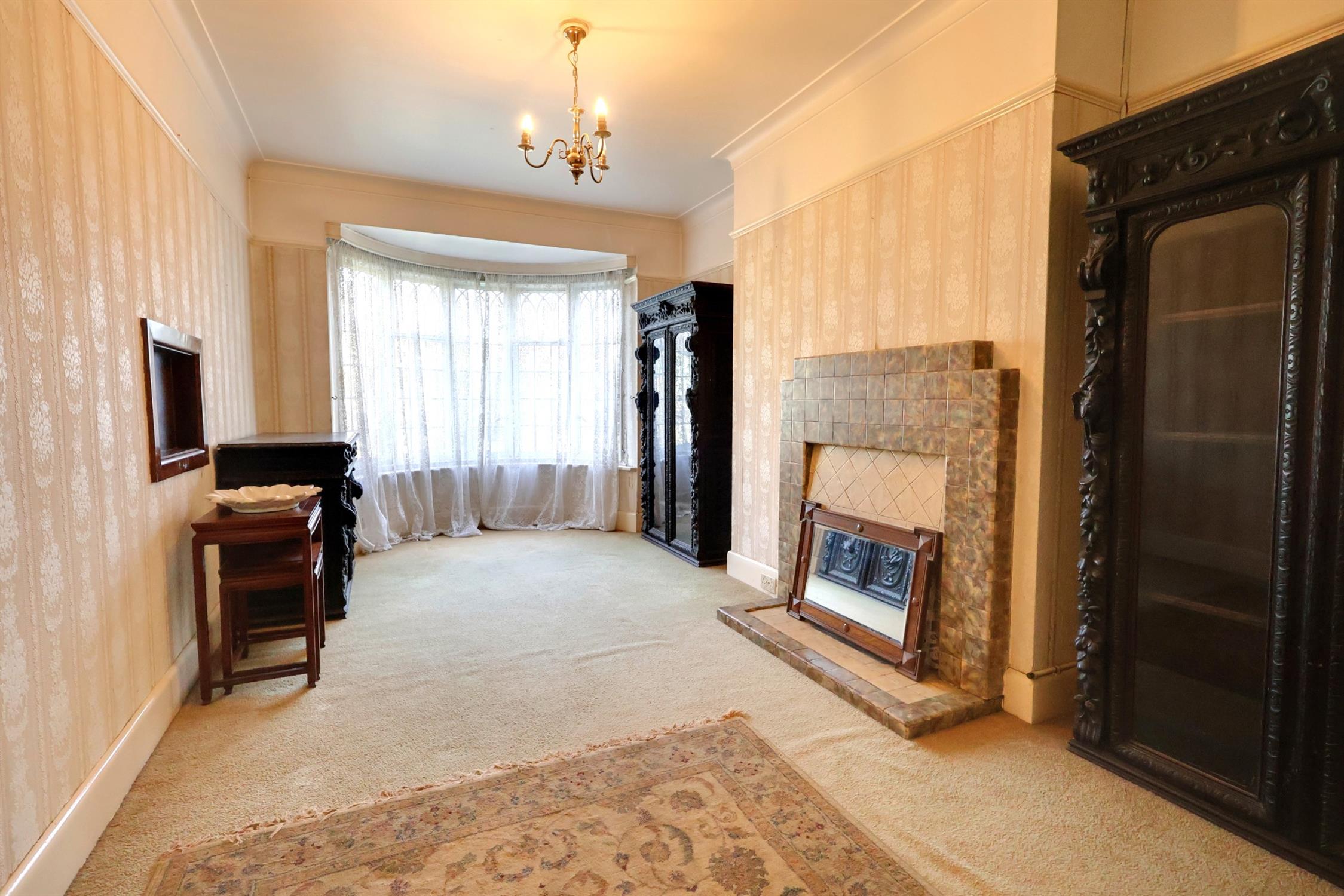 Impressive leaded secondary double glazed bay window to side elevation. Curved radiator. Further radiator. Smooth plastered ceiling. Tiled fireplace with fitted gas fire. Double glazed door to rear elevation.