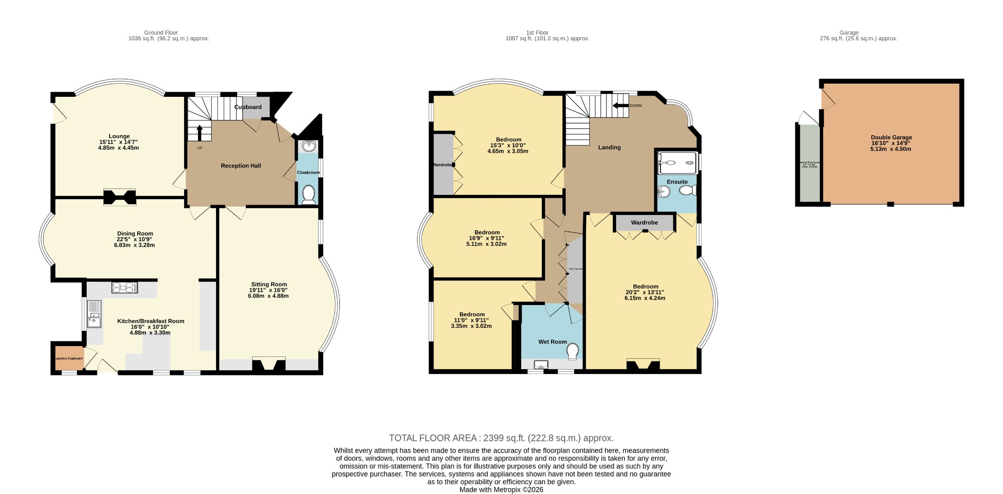 BEDROOM THREE 16' 9" (5.11m) x 9' 11" (3.02m)::