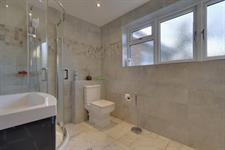 Smooth plastered ceiling and recessed lighting. Obscure double glazed window. Quadrant style shower cubicle, vanity wash basin and w.c. Towel rail/radiator. Tiled walls and tiled flooring with under floor heating.