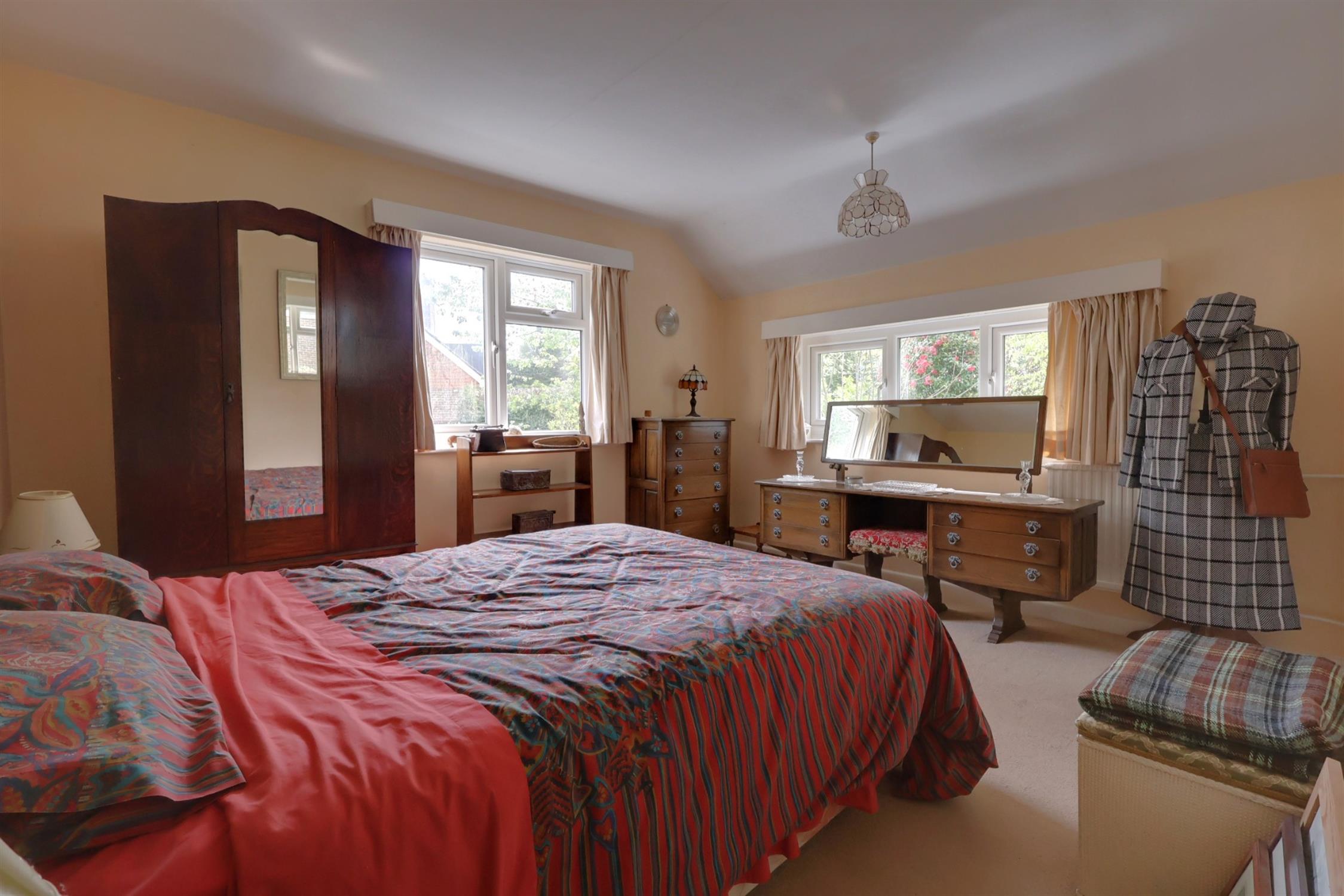 Dual aspect room with two double glazed windows. Radiator. Built-in wardrobe cupboards. Smooth plastered ceiling.