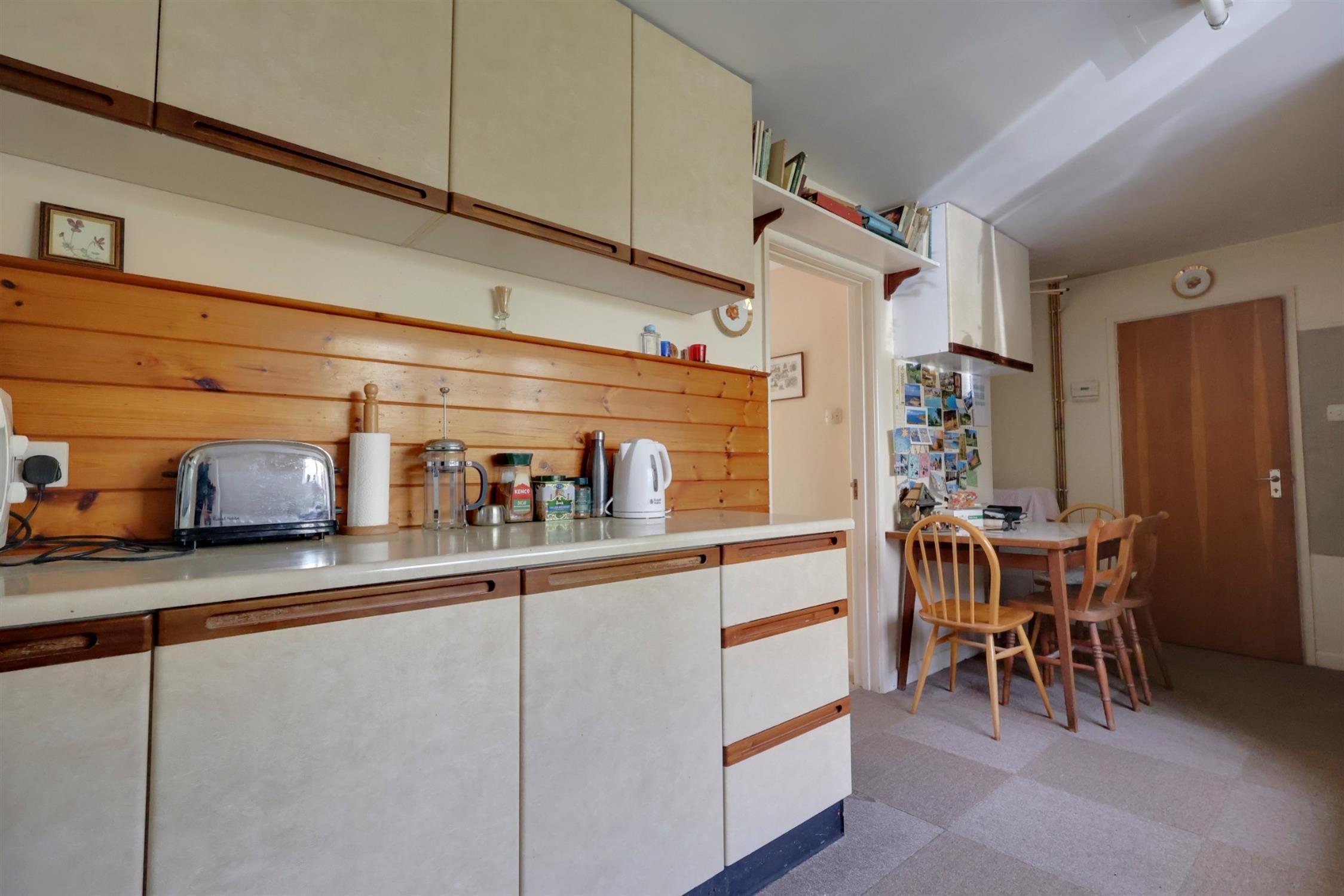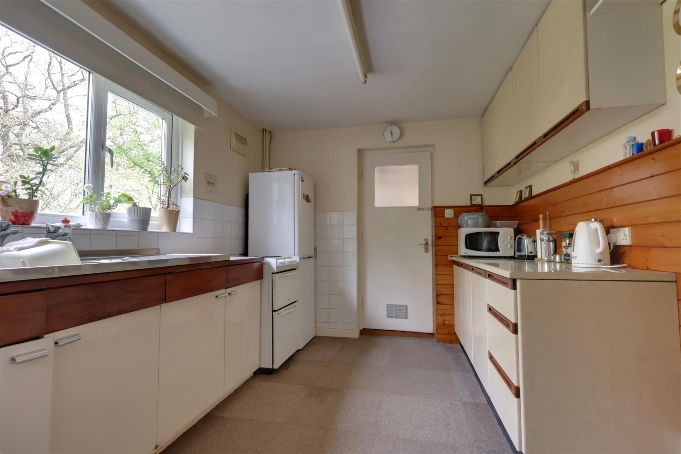 A fitted range of units to include single drainer stainless steel sink unit. Double glazed window to front elevation. Pantry style cupboard. Floor mounted central heating boiler. Suitable space for slot-in cooker and fridge/freezer. Fluorescent strip lighting. Tiled splash backs. Door with obscure glazed insert leading to:-