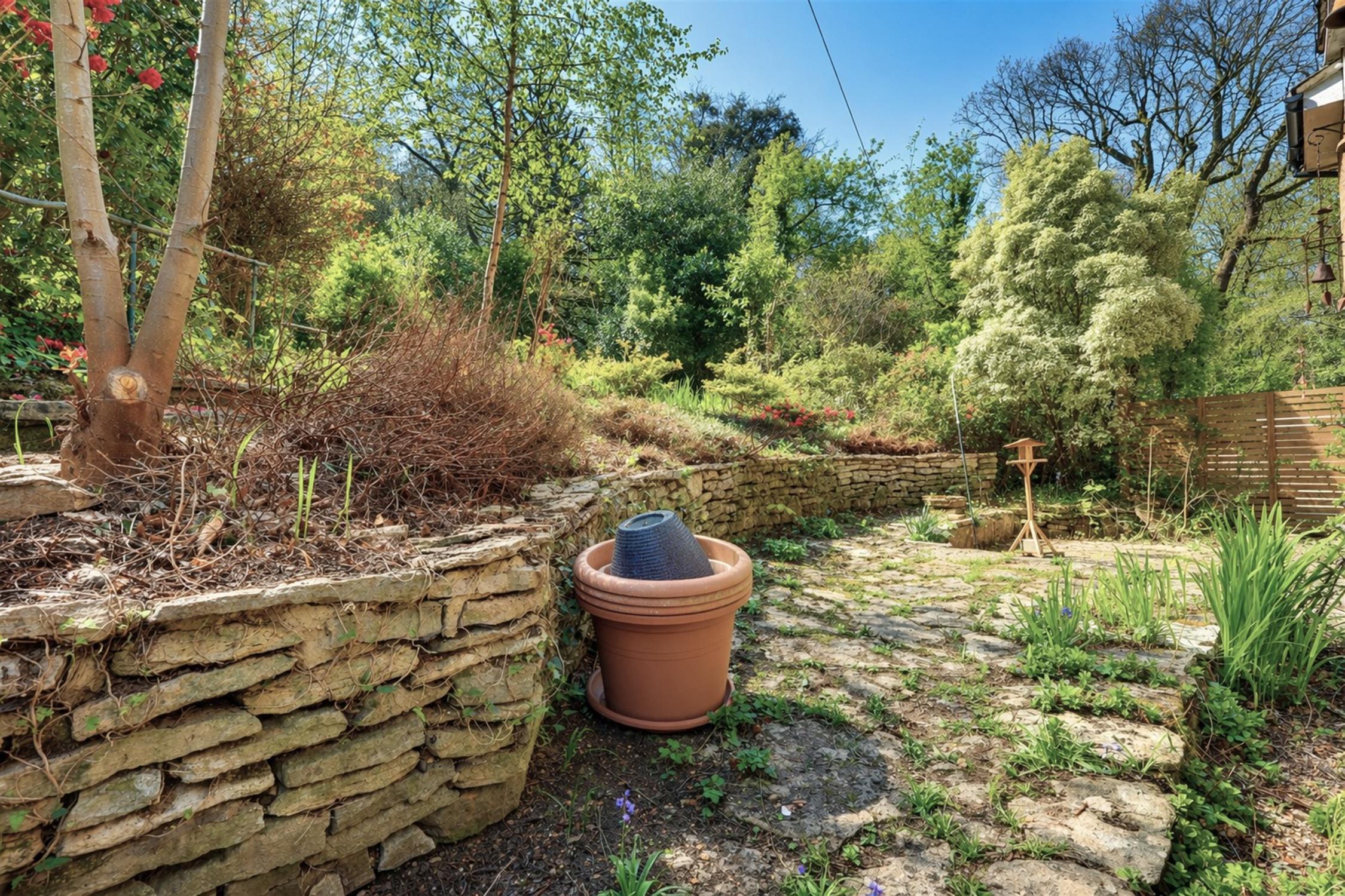 The front of the property is approached by private driveway with an extensive lawn trimmed with dry stone walling with a range of mature flowers, shrubs and trees and a high degree of privacy.