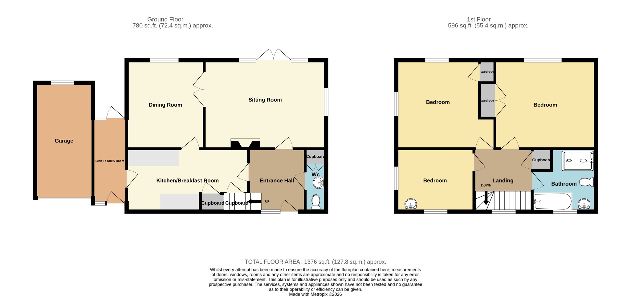The property benefits from a garage with up and over door to the front elevation. Window to rear elevation and courtesy door to the rear garden.
