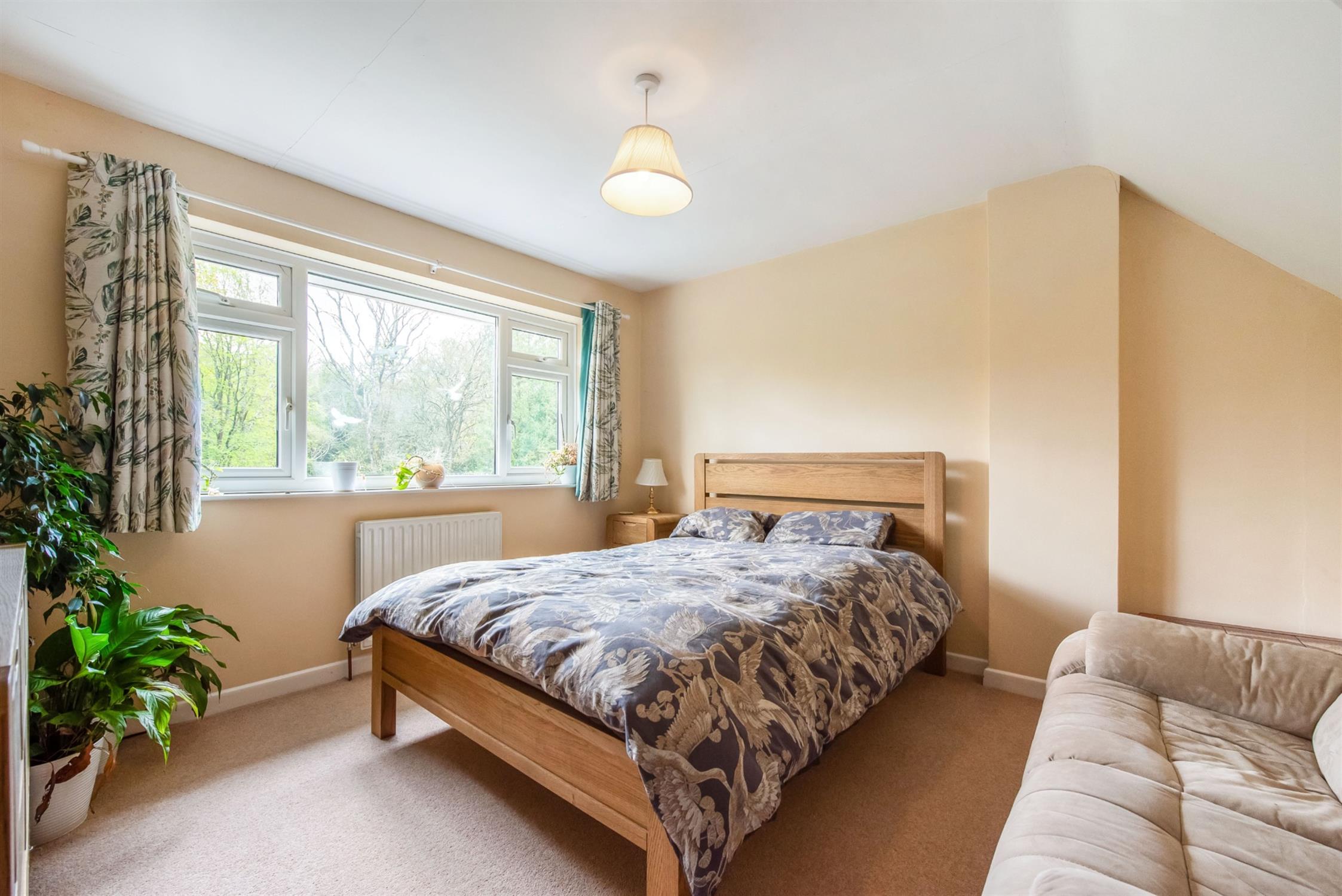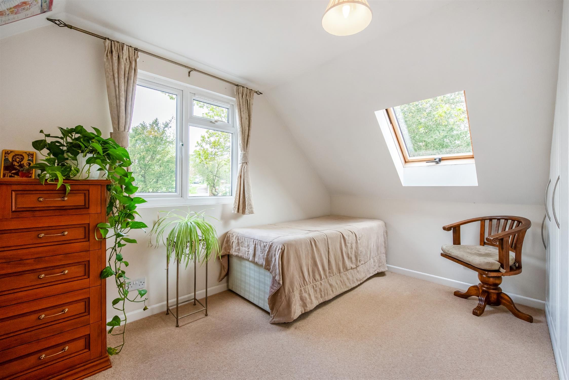 Double glazed window offering a southerly aspect and views over the rear garden. Radiator. Access to eaves storage.
